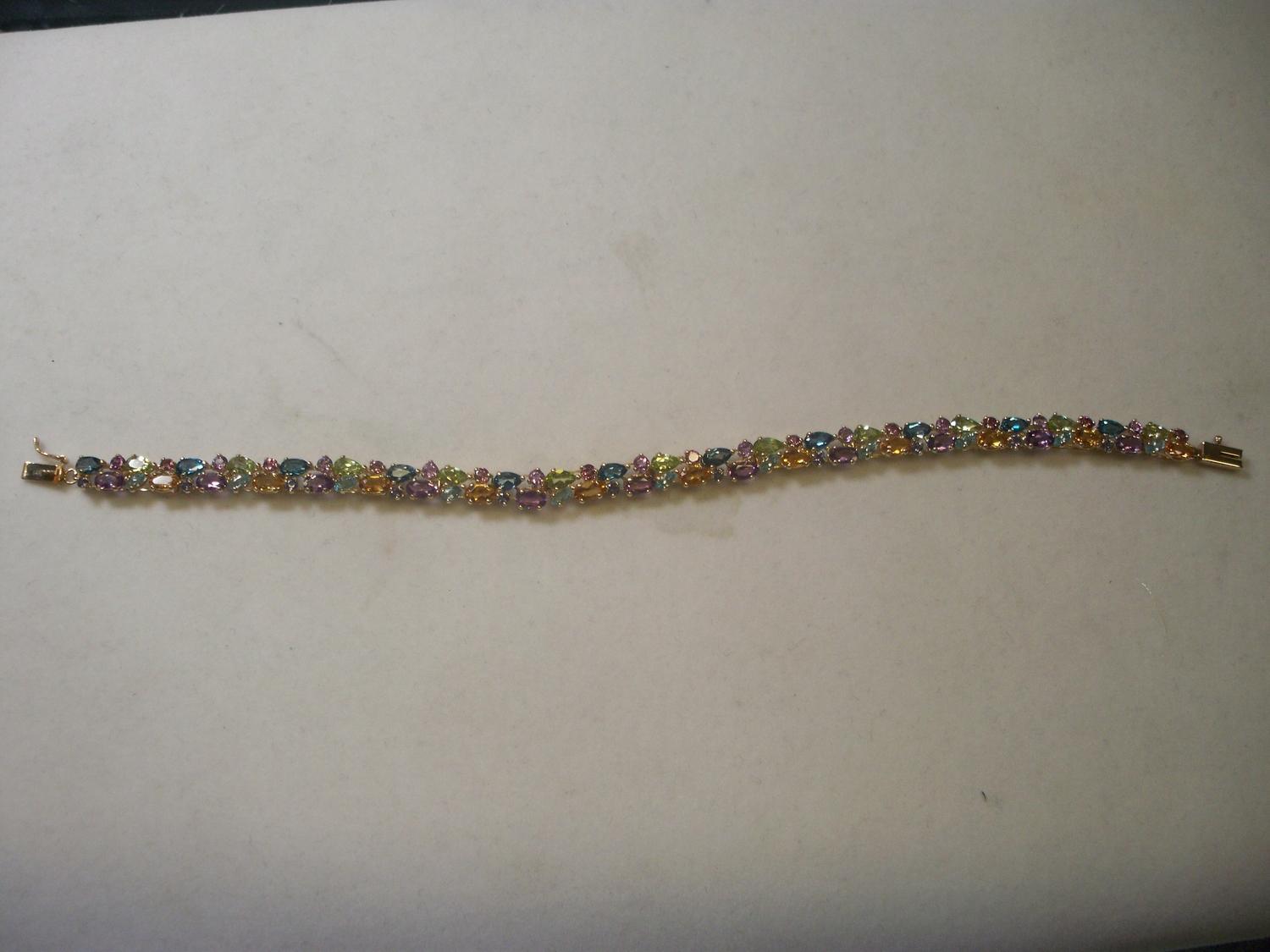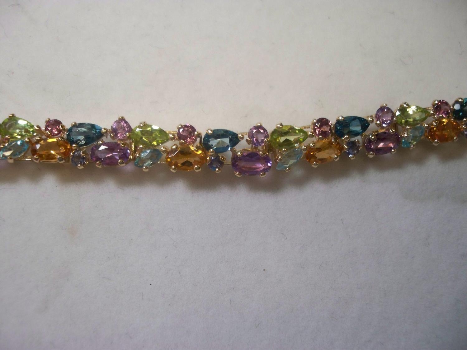 14K Gold Multicolored Stone Bracelet, 12 Grams Gold, Genuine Gemstones,including, Garnets, Blue & Yellow Topaz, Peridot Etc