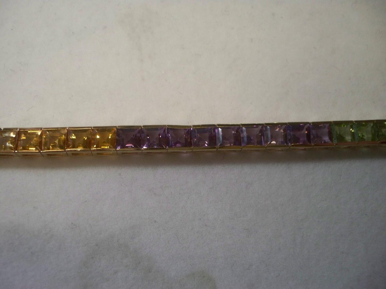 14K Gold Multicolored Stone Bracelet, 12 Grams Gold, Genuine Gemstones, Garnets, Amethysts, Tourmaline, Peridot