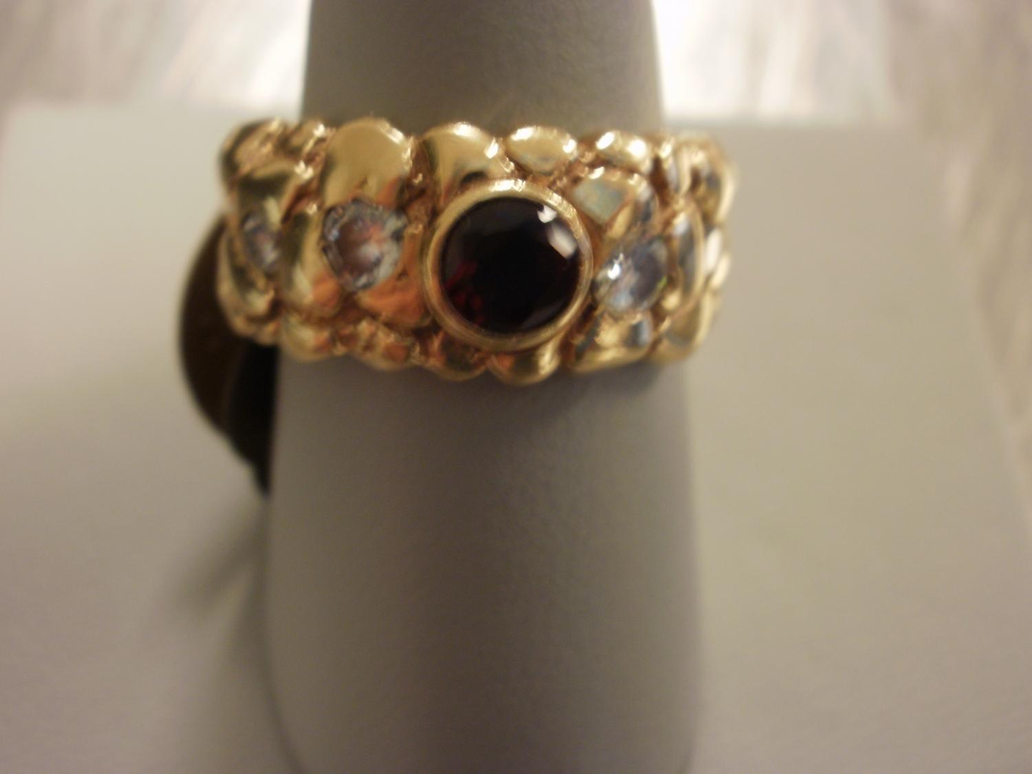 14K Gold Nugget Ring W/Burmese Ruby $ Diamonds, 9.4 Grams Gold