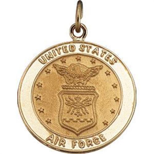 14k Yellow Gold Pendant UNITED STATES AIR FORCE Medal measuring 3/4 inch across. There is a 14k Gold bail to slip through a chain.