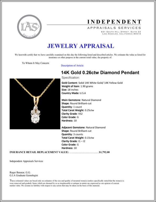 Regarding Appraised Jewelry and Loose Stones - Auctionfarm sends them out to a third party for Retail Replacement Value Appraisals, which are the most common. These types of evaluations are written for insurance needs. This would be the cost to replace the jewelry with an item of equal quality and kind, considered to be the current market price or the replacement value. This type of appraisal is done to protect you in the event of damage or loss of a valuable item. Our appraisals are conducted by independent 3rd Party appraisal firms that utilizes Certified GIA Gemologist. Appraisals should be used for verification of gemstone and/or metal weight, size, and grade only, not actual value. Appraisal value should be considered for insurance purposes only, not actual value, as price varies greatly from retail locations thru out the world. Items should not be purchased with the expectation to resell for appraisal price, or for profit.