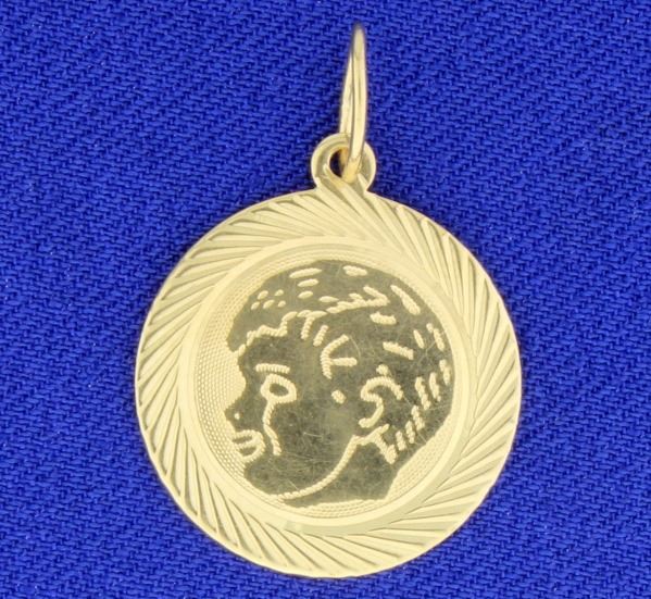 14K yellow gold, it is just over an inch long with the bale. Back is blank so can engrave name or birthdate. 1.9g