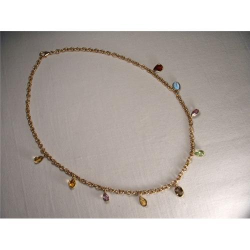 <tr><td>Title:14K Gold Peridot Garnet Citrine Topaz Necklace</td></tr>