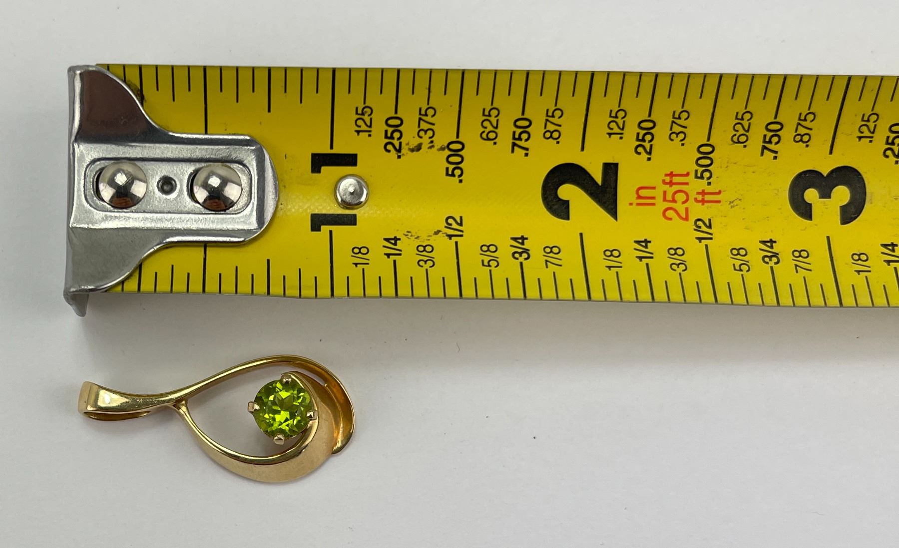 Very nice pendant. Weighs 3.1 grams. Measures 1 1/8" long.