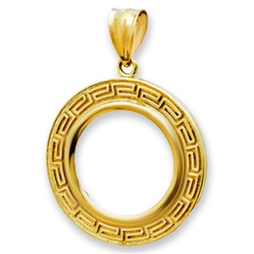 14K Gold Prong Greek Key Coin Bezel - 22 mm **|**|** Mint Mark: Circulated ; Grade: Varies ; Denomination: Varies ; MSRP: $500
