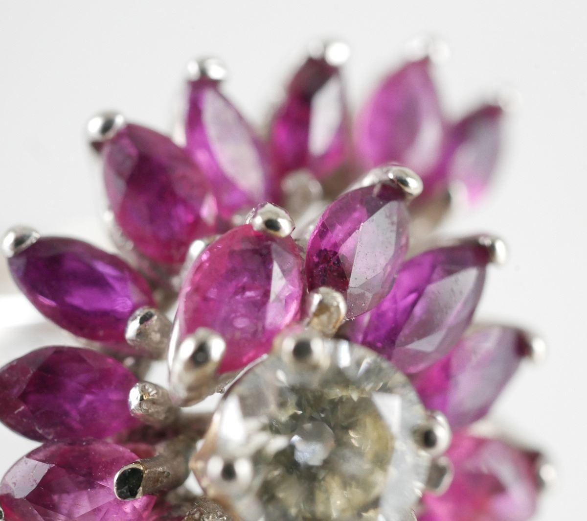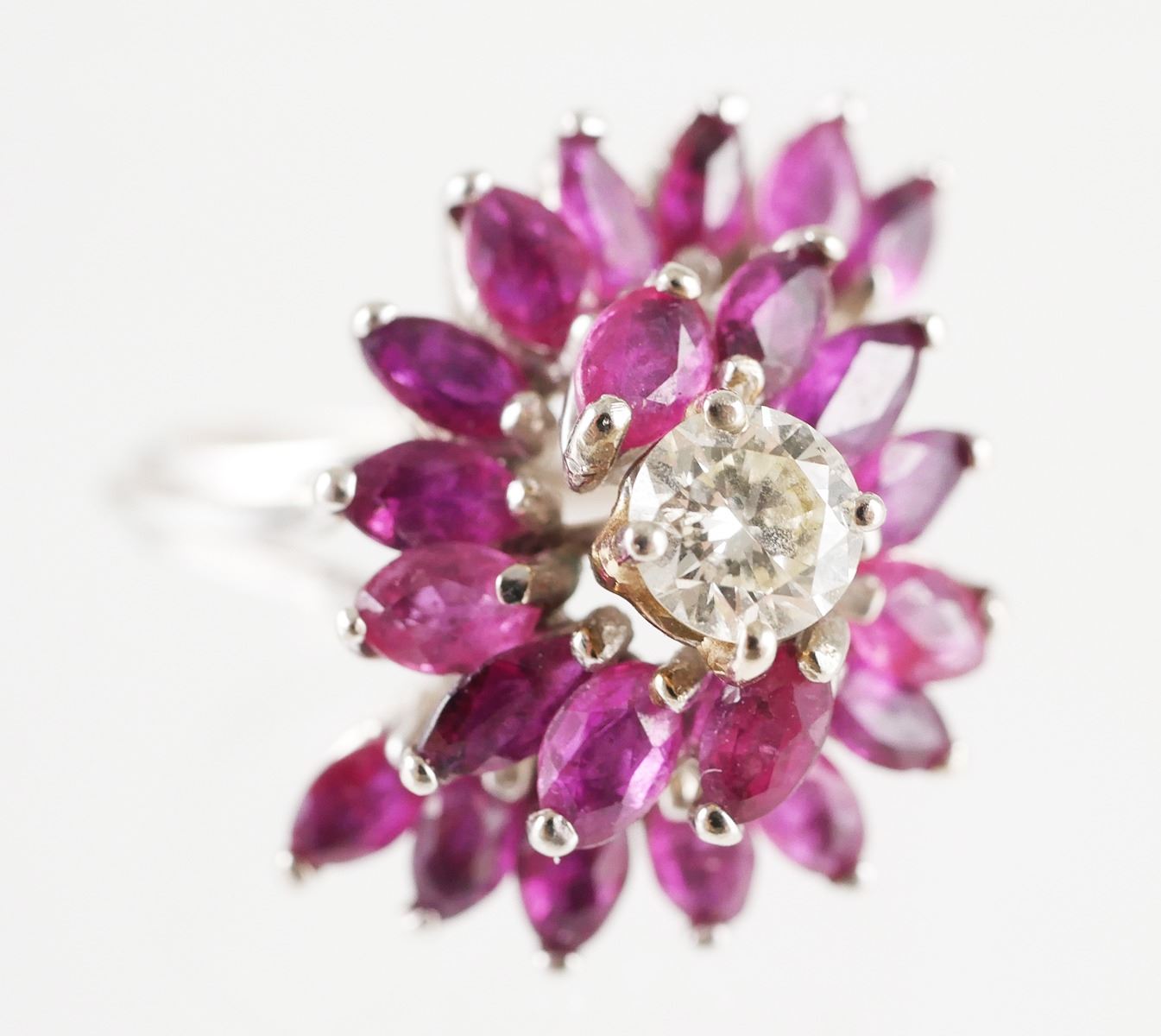 14K Gold RUBY & DIAMOND Waterfall Cluster Ring