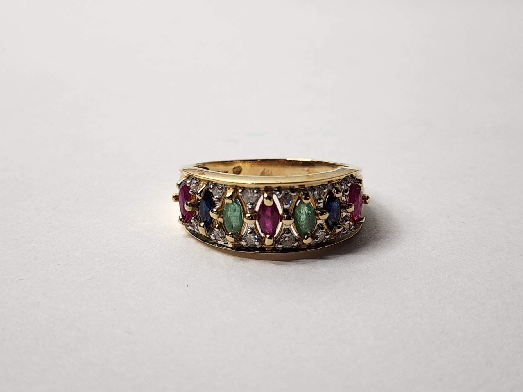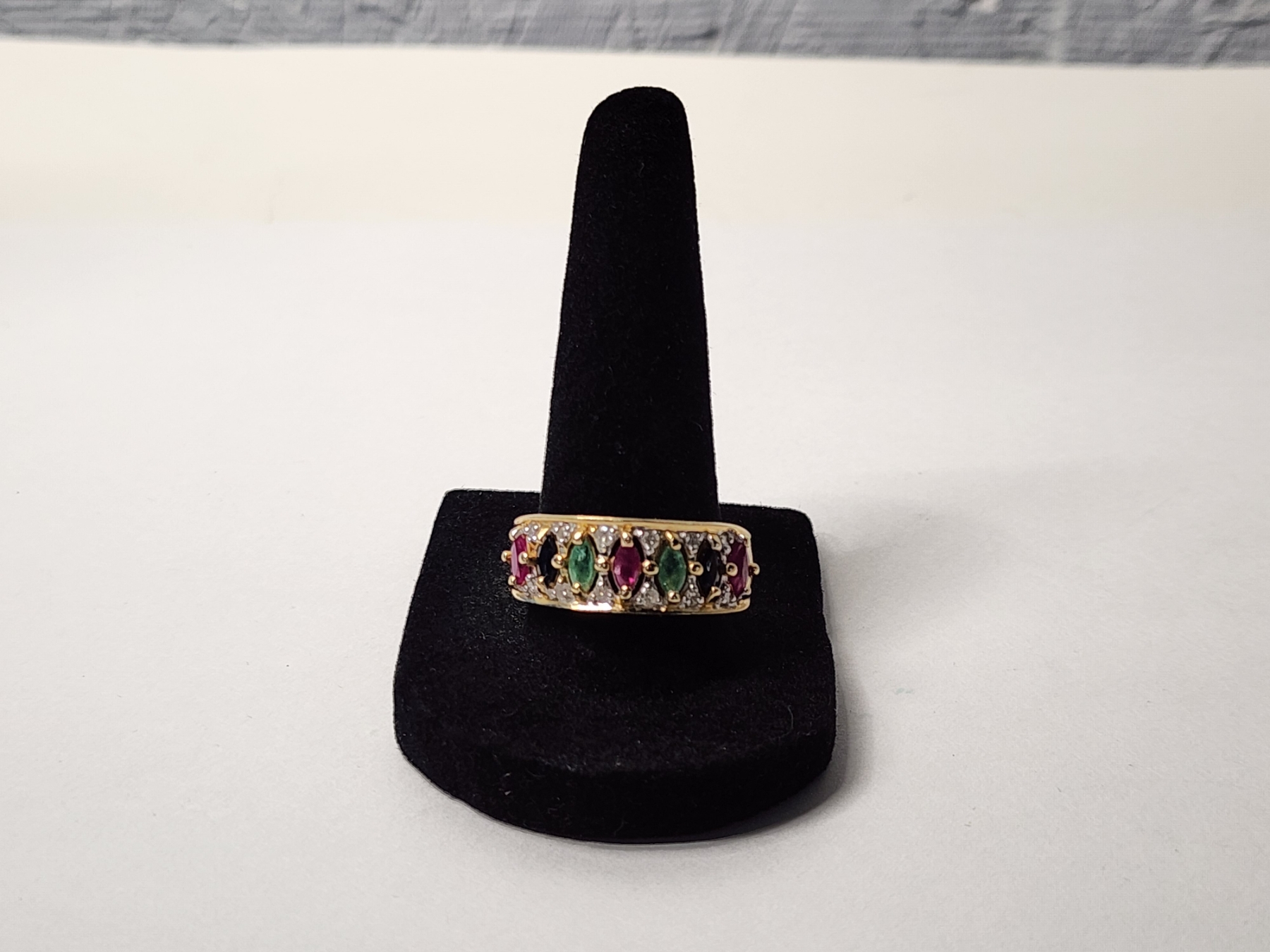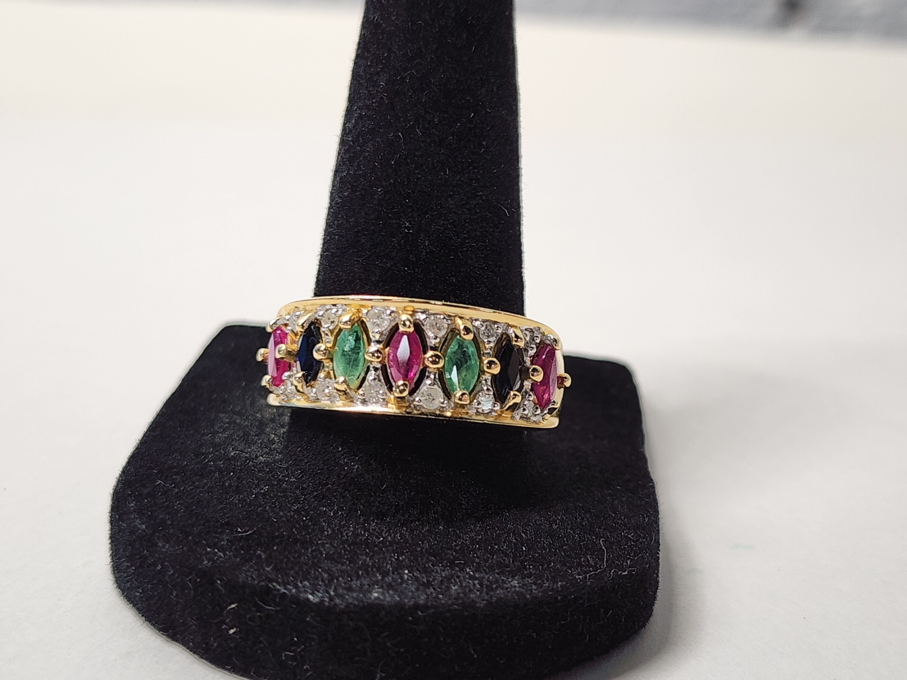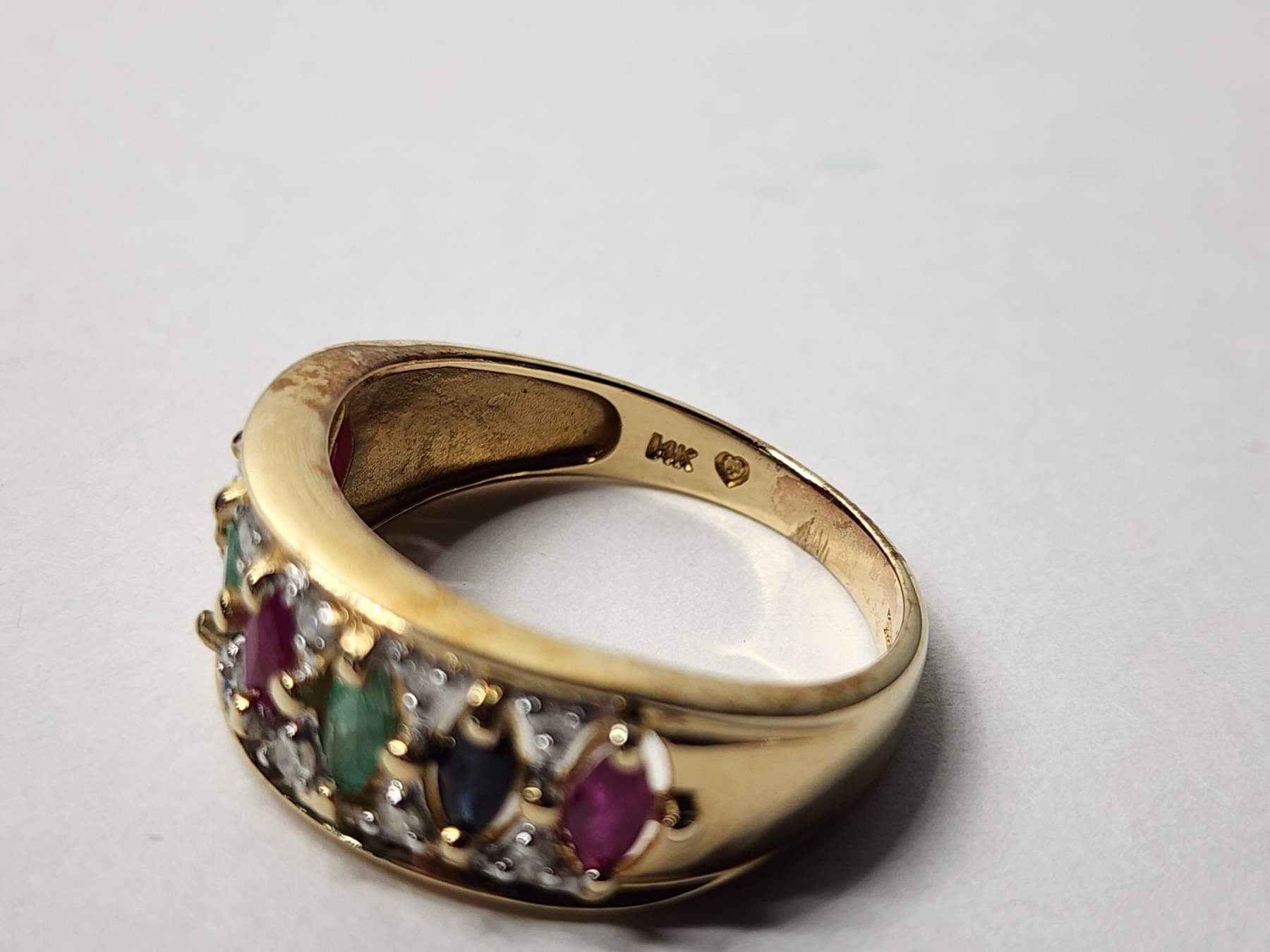 14K Gold Ring with Diamonds and Colorful Stones Size 10 TW: 5.3g