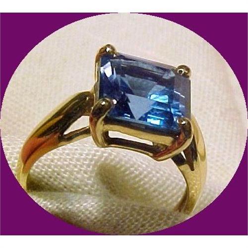 Gorgeous & flashy 14k Gold Ring with set with a large square BLUE TOPAZ GEMSTONE. The stone measures 8mm across the top. It is faceted and prong set. The ring is a size 5-. The condition is excellent.
