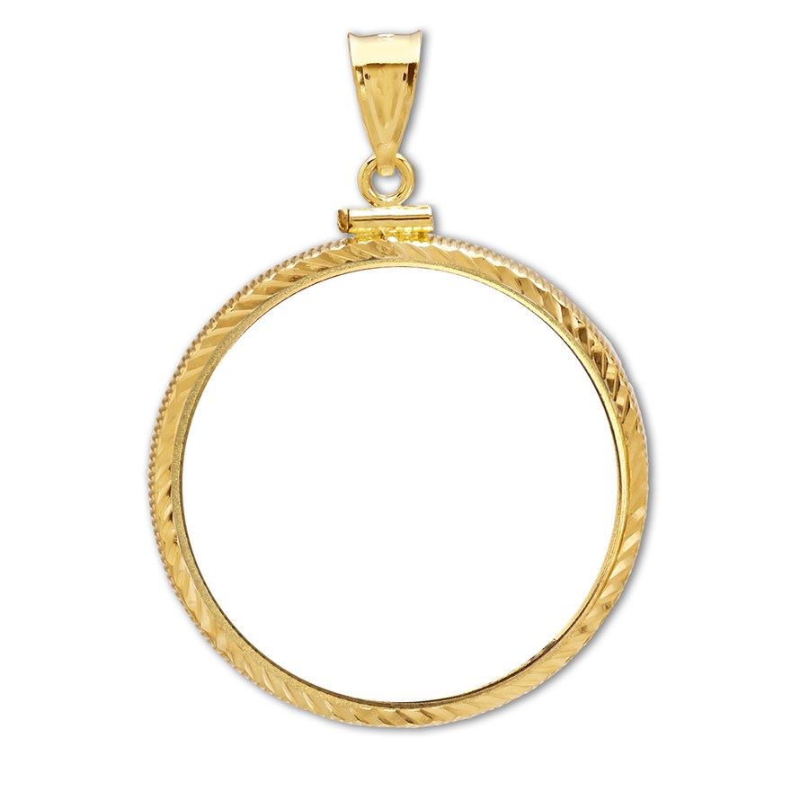 14K Gold Screw-Top Diamond-Cut Coin Bezel - 22 mm