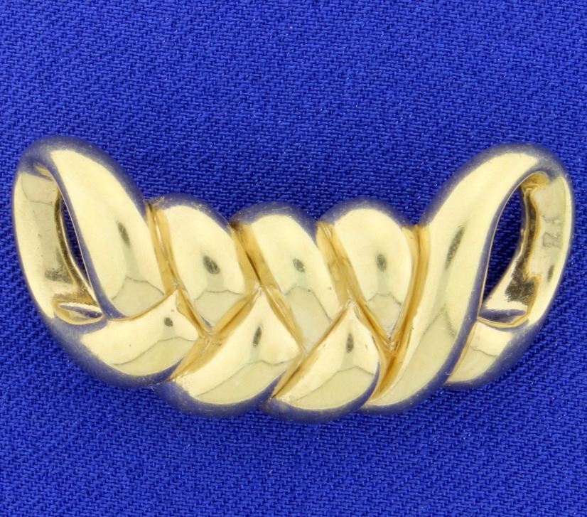 14K yellow gold, the slide is 1 5/8 inches long and 5/8 inch wide. 6.5g
