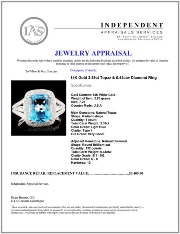 Regarding Appraised Jewelry and Loose Stones - Auctionfarm sends them out to a third party for Retail Replacement Value Appraisals, which are the most common. These types of evaluations are written for insurance needs. This would be the cost to replace the jewelry with an item of equal quality and kind, considered to be the current market price or the replacement value. This type of appraisal is done to protect you in the event of damage or loss of a valuable item. Our appraisals are conducted by independent 3rd Party appraisal firms that utilizes Certified GIA Gemologist. Appraisals should be used for verification of gemstone and/or metal weight, size, and grade only, not actual value. Appraisal value should be considered for insurance purposes only, not actual value, as price varies greatly from retail locations thru out the world. Items should not be purchased with the expectation to resell for appraisal price, or for profit.