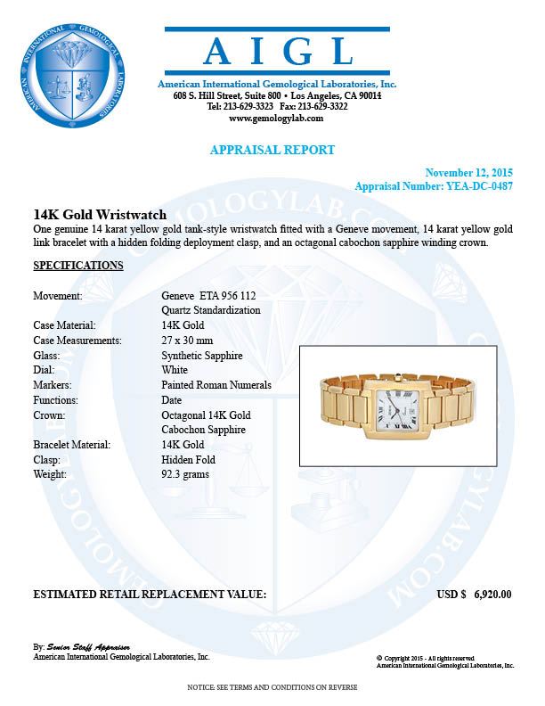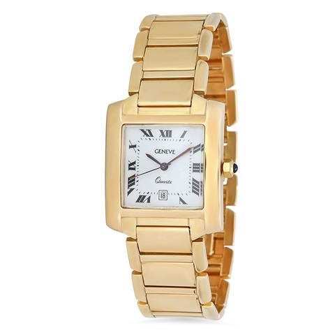 Retail: $6,920.00 ****** 14K Gold Wristwatch (Geneve Movement) ****** One 14K Gold Wristwatch / Case: 14K Gold / Dial: White / Bracelet: 14K Gold / Clasp: Hidden Fold / Weight: 92.3 grams / Condition: Pre-owned - Mint //