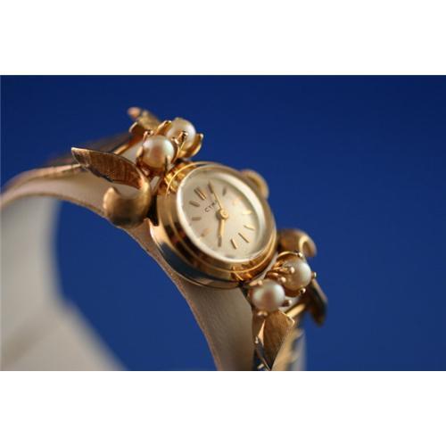 <table width="100%" border="0" cellspacing="0" cellpadding="4"><tr><td><em> Prestigious CYMA watch- mint condition- 14K gold and Pearls!</em></td></tr><tr> <td width="100%"> This prestigious, luxury watch from the 1950's is in fine working order. The bracelet and case are crafted from 14K yellow gold. The bracelet is 7" long, has a secure clasp and a safety chain. The face is 5/8" in diameter. The white pearlescent face with gold markers is in very good condition, as is the crystal. The face is flanked, top and bottom by swirls of gold and four, 4mm pearls. This is a great find! </td></tr><tr> <td> </td></tr><tr> <td>Reference #: W18</td></tr><tr><td>Condition:Excellent</td></tr><tr><td>Year:1950's</td></tr><tr><td>Maker:Cyma</td></tr><tr><td>Title:14K Gold and Pearls CYMA Ladies Watch-1950's</td></tr><tr><td>Materials:14K Yellow Gold and Pearls </td></tr><tr><td>Location:Minneapolis, Minnesota</td></tr></table>