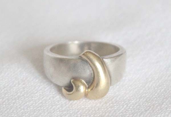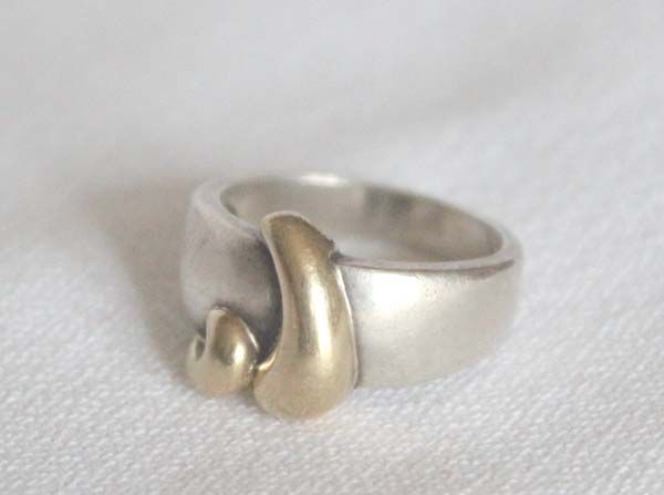 14K Gold on Sterling Silver Ring, Size 7.5, stamped Precious Precious TM 14K .925