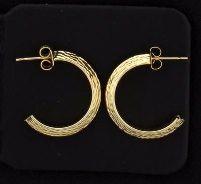 14K yellow gold they have a diamond cut design and are 1 inch long. 1.2g
