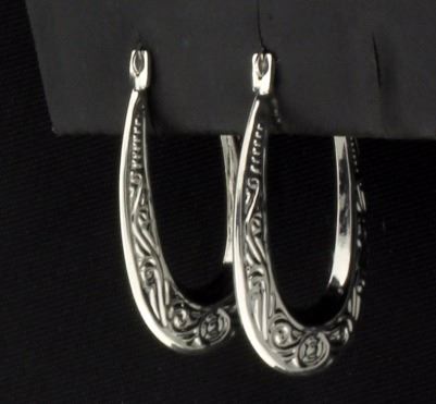These earrings are 14K white gold and are 1 inch long. Beautiful detail! 1.2g