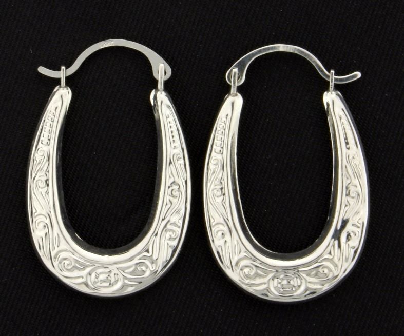 These earrings are 14K white gold and are 1 inch long. Beautiful detail! 1.2g