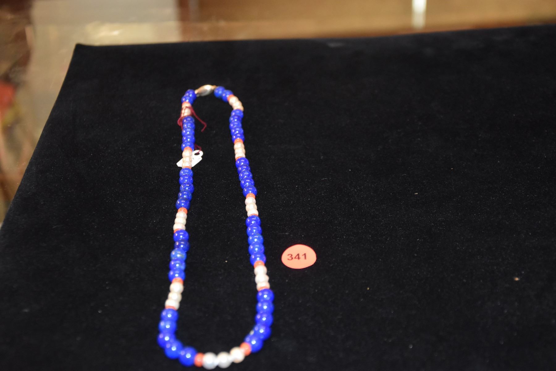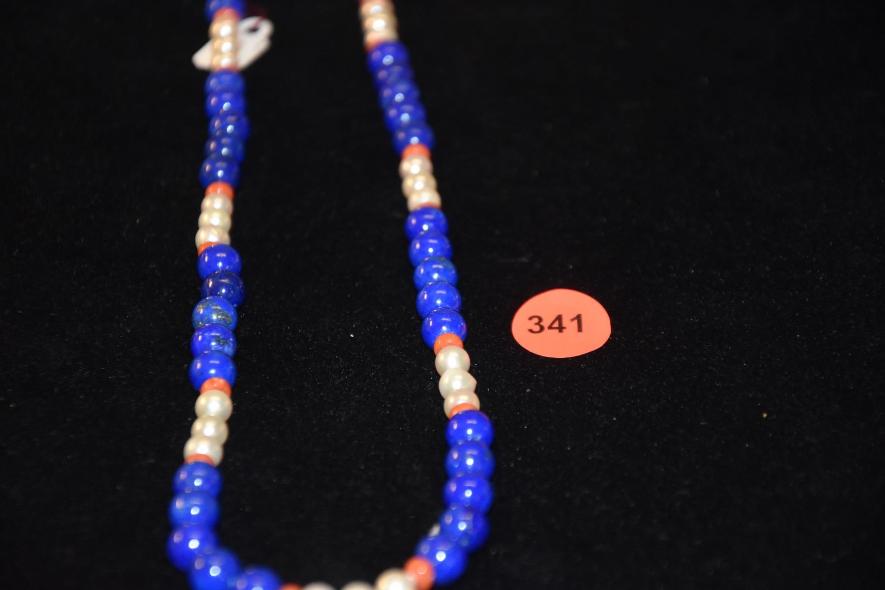 14K LAPIS LAZULI, RED CORAL & BAROQUE PEARL NECKLACE (27")