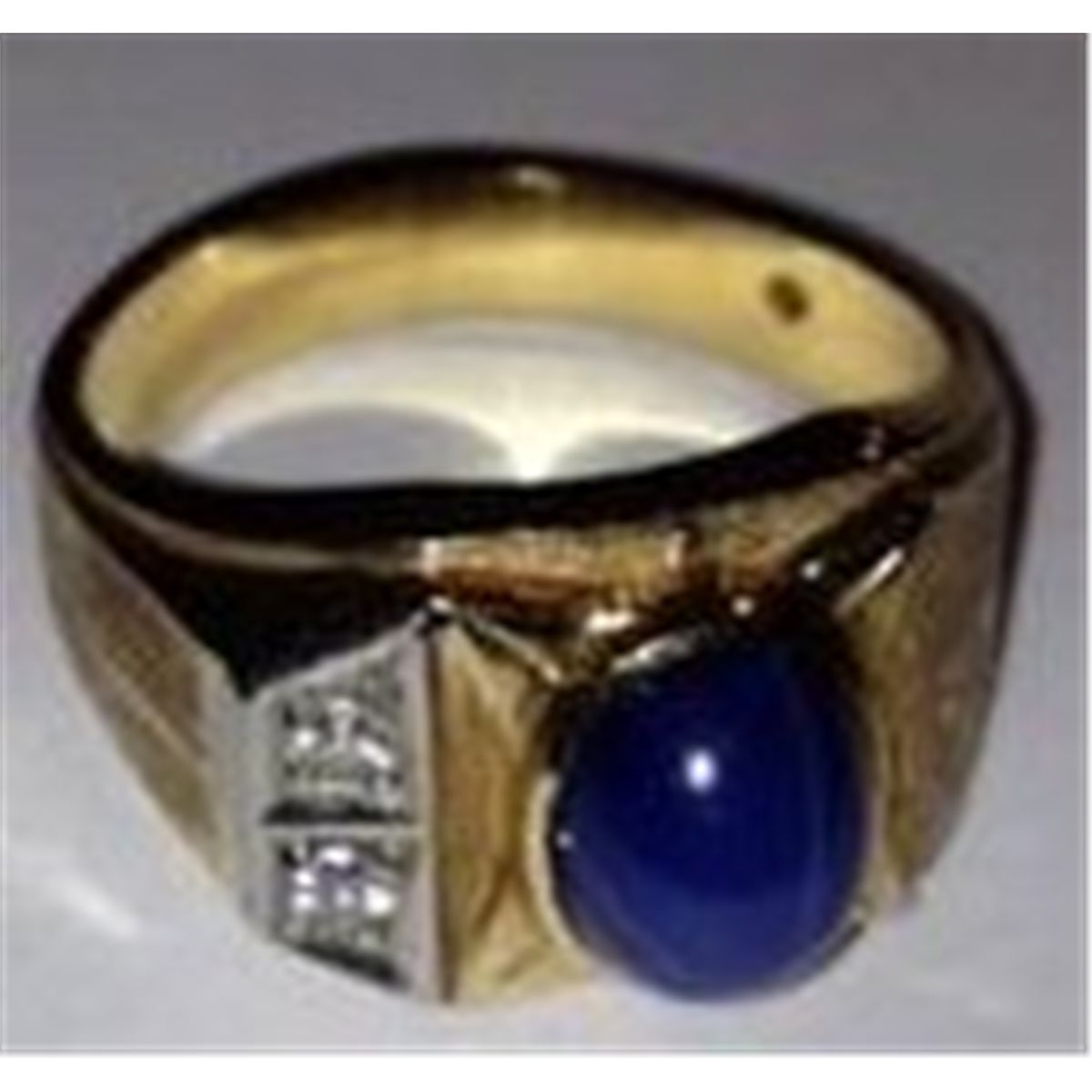 14K MENS GOLD RING W/.12 CT VS DIAMONDS AND LINDE BLUE STAR SAPPHIRE, 9 GRAMS GOLD