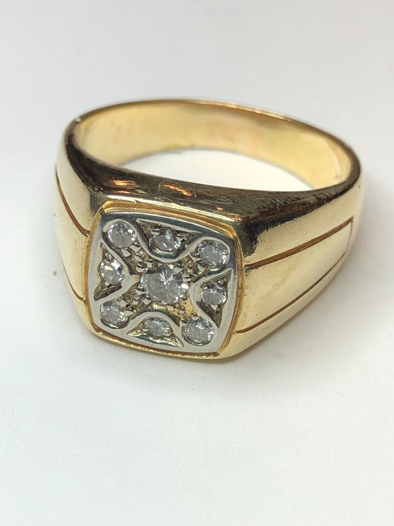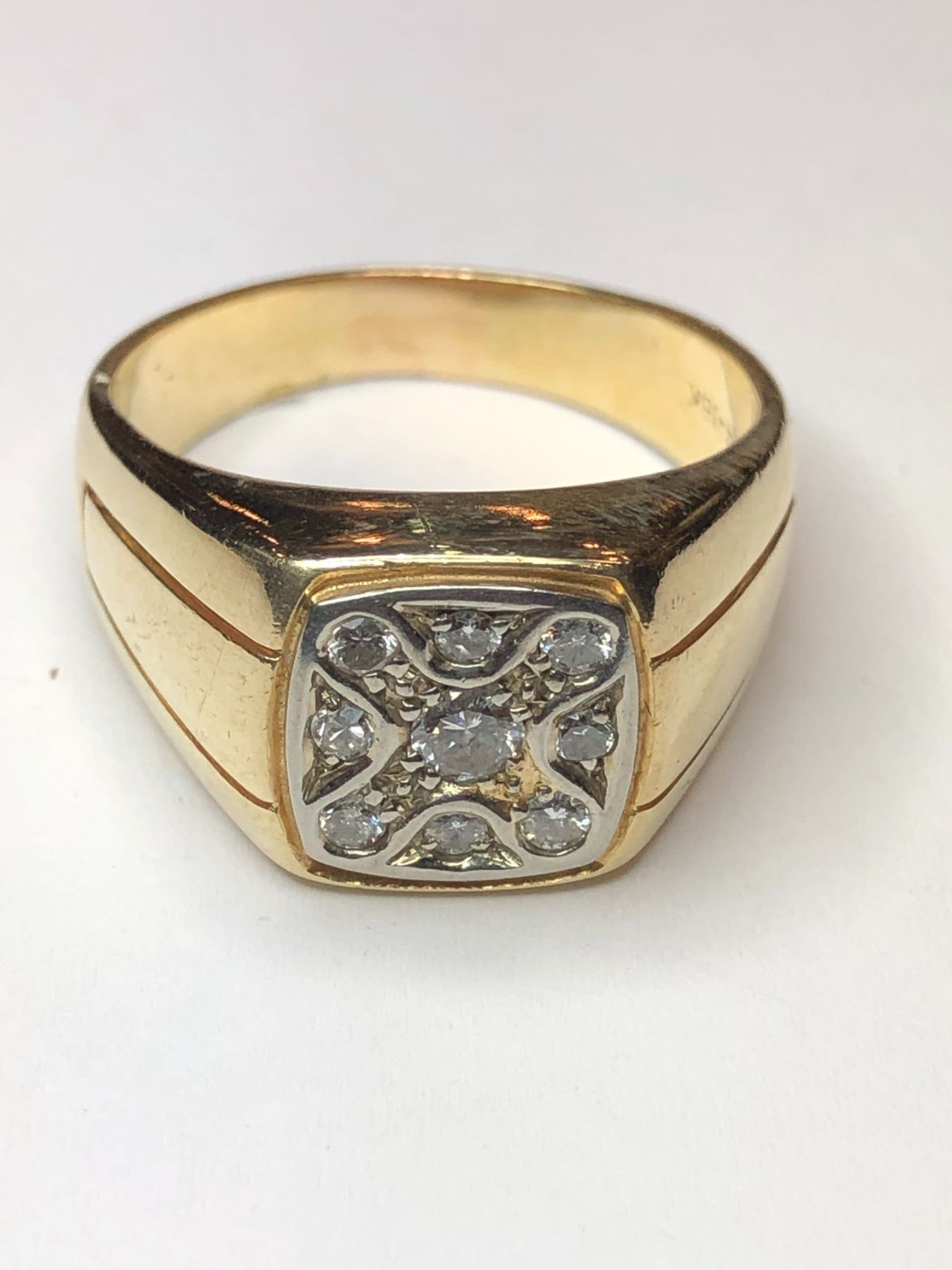 14K Men's Yellow Gold Diamond Ring Weight: 10.9g 14K Yellow Gold Stone: Diamond Melee Current Size: 10.75