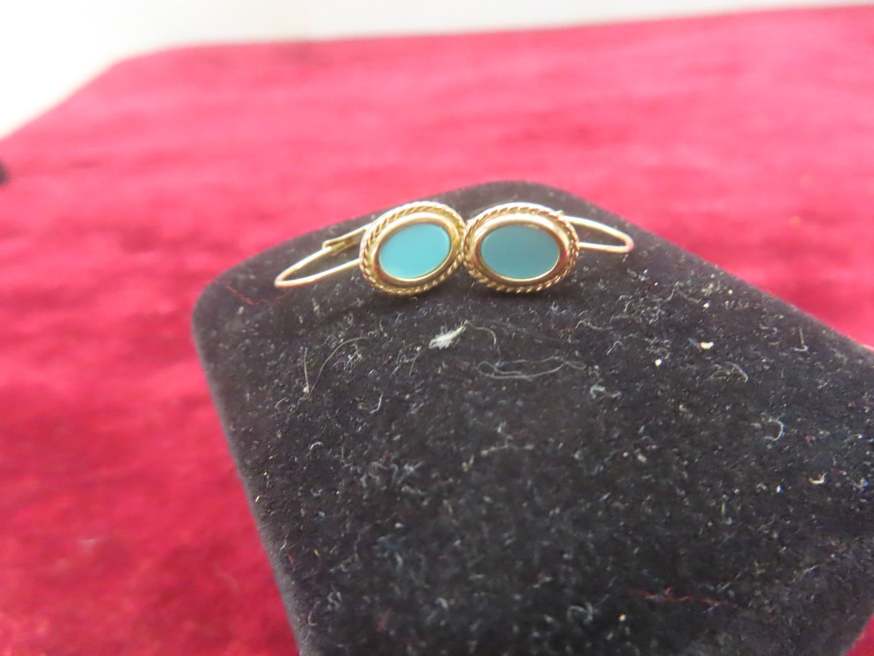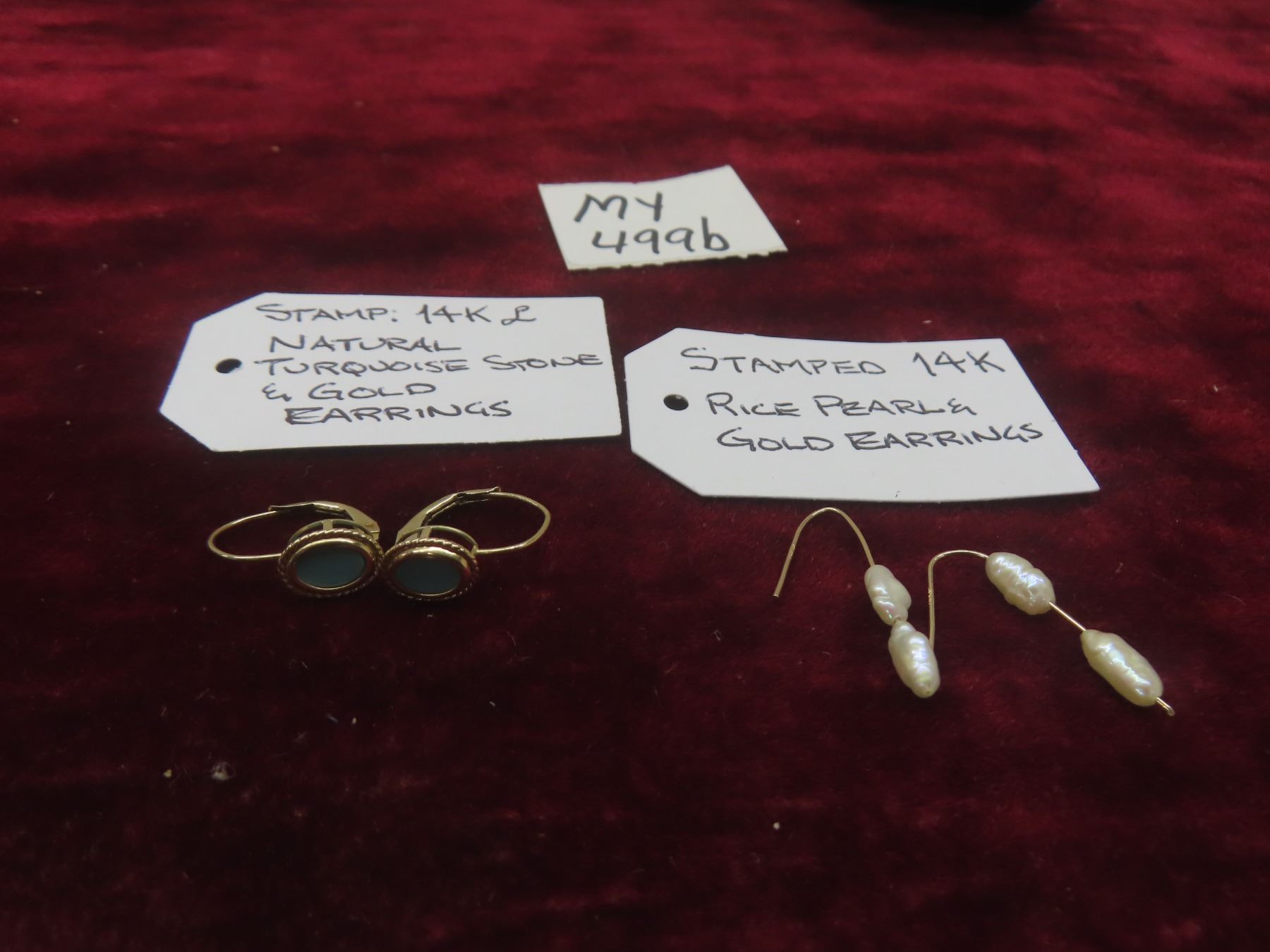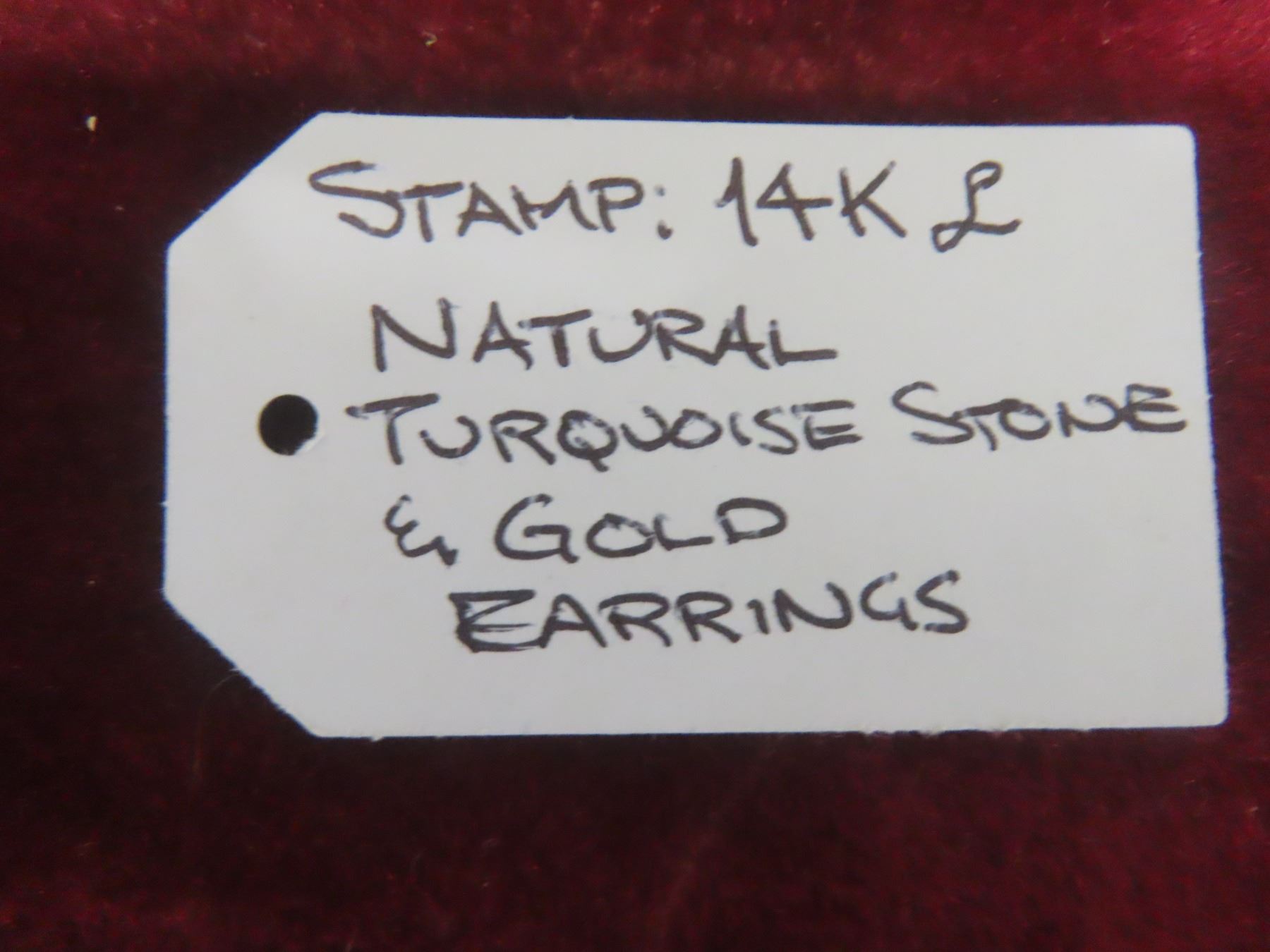14K Natural Turquoise Stone and Gold Earrings and 14K Rice Pearl Gold Earrings (Stamped)