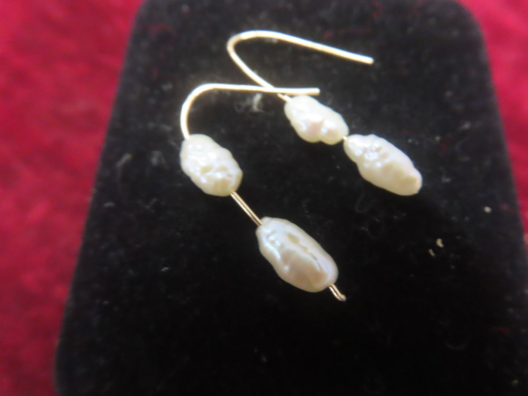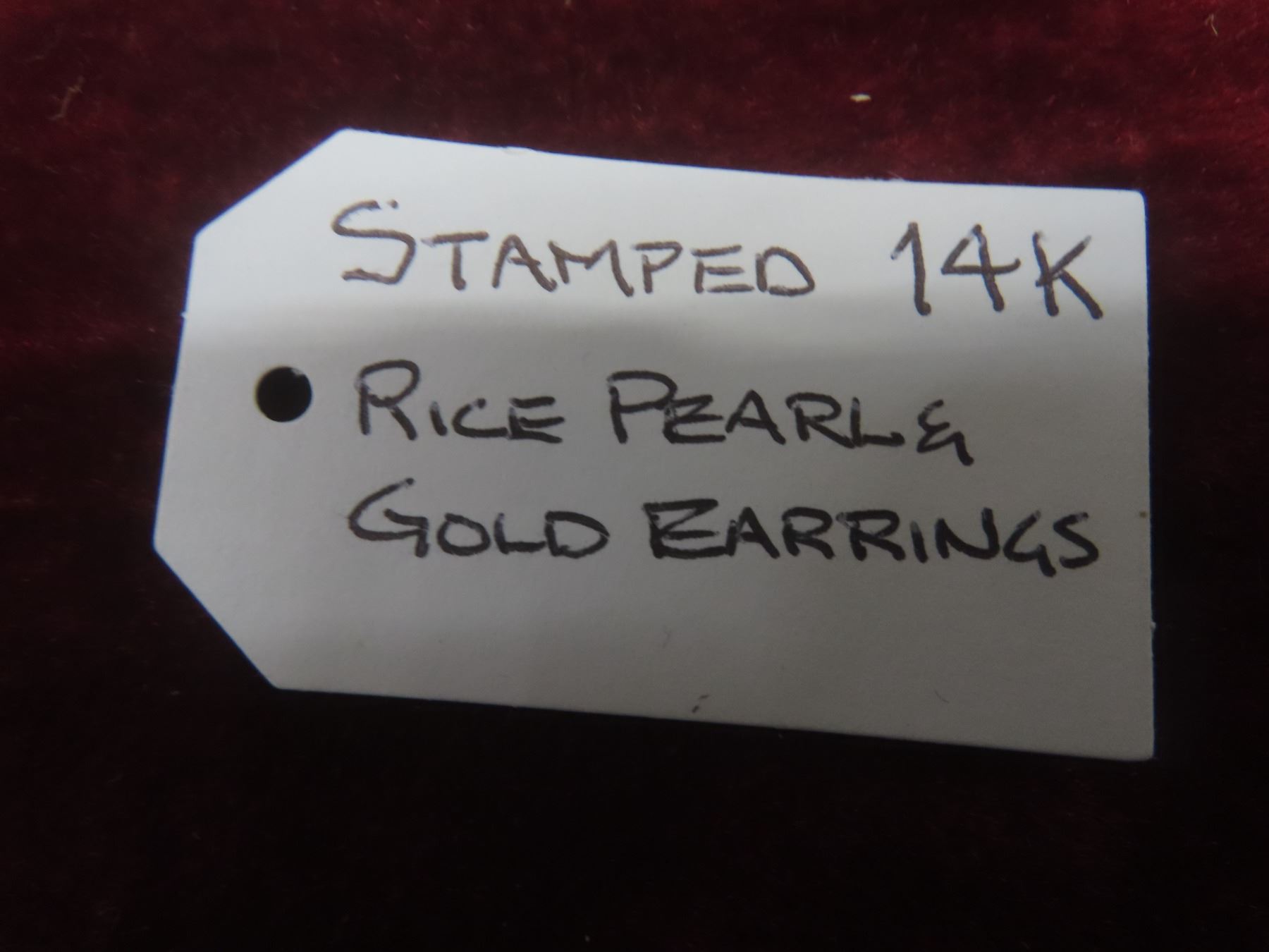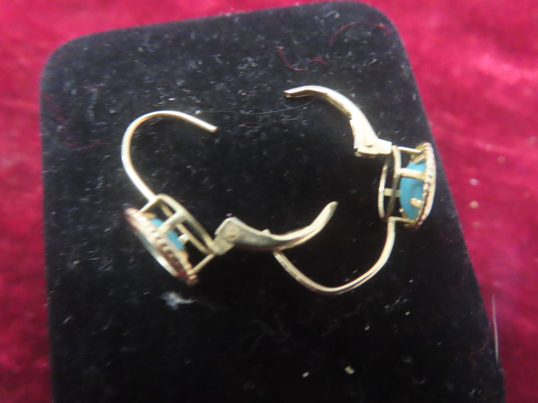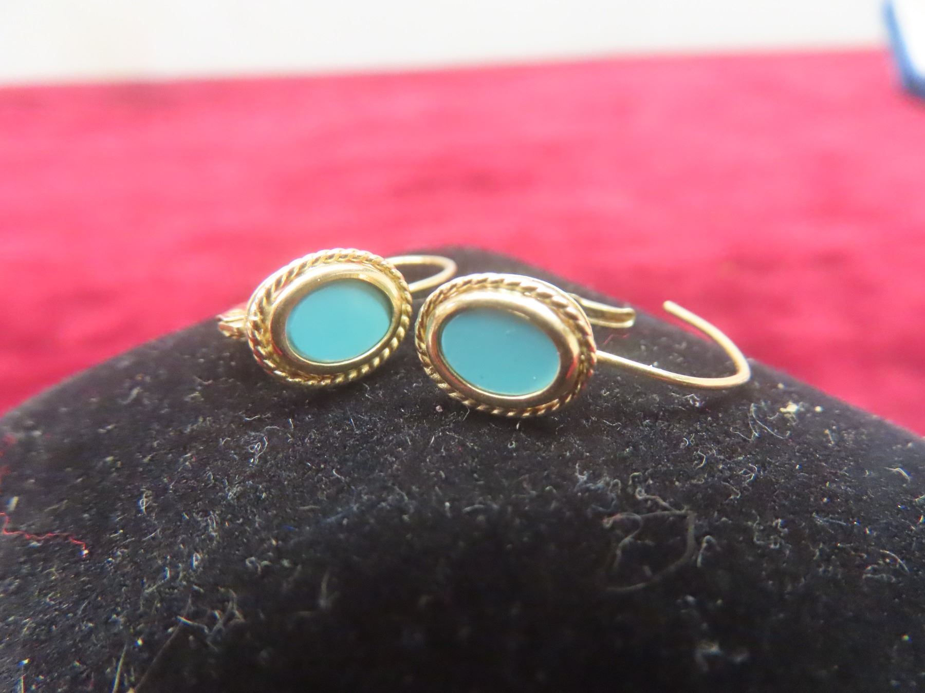 14K Natural Turquoise Stone and Gold Earrings and 14K Rice Pearl Gold Earrings (Stamped)