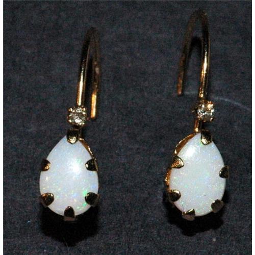 Very pretty opals & diamonds set in 14k gold lever back earrings. The condition is excellent.