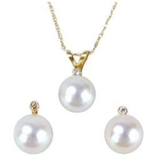 This Matching Set features a pair of 14K CULTURED PEARL EARRINGS 7.0-7.5MM with a DIAMOND as accent. The Earstuds have a 14k Gold post for pierced ears. There is a Matching 14k Yellow Gold NECKLACE featuring a CULTURED PEARL 7.0-7.5MM with a DIAMOND as accent suspended from a 14k Yellow Gold Chain 18 inches in length. IF YOU BOUGHT THIS PEARL AND DIAMOND NECKLACE WITH MATCHING EARRINGS IN A RETAIL JEWELRY STORE YOU WOULD PAY TWICE MY PRICE PLUS SALES TAX!