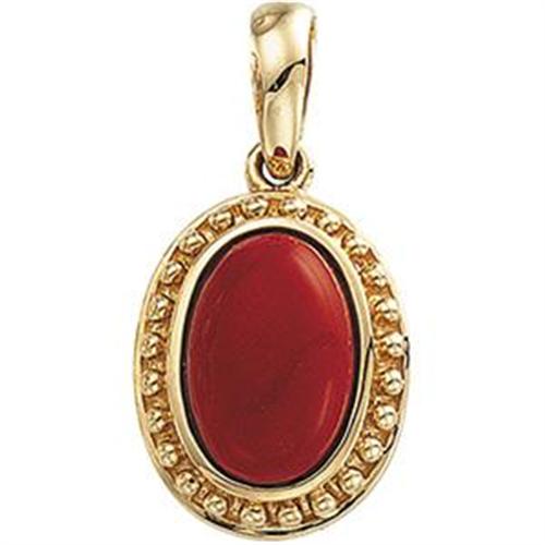14k Yellow Gold Pendant featuring an Oval GENUINE RED JADE surrounded by lovely Gold beadwork. The Red Jade measures 11 x 7mm and = 3 Carats!