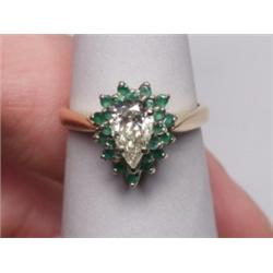 14K Pear Shape Diamond Ring Diamond 1.02 Carat Emerald .33 Carats TW