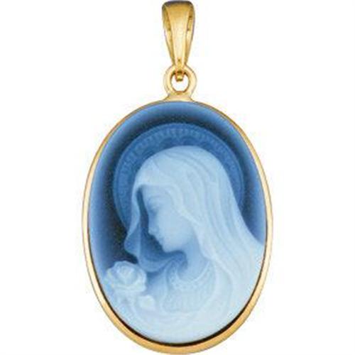THIS CAMEO PENDANT IS ABSOLUTELY EXQUISITE! It is a 14k Yellow Gold Pendant with an Oval AGATE CAMEO of the MADONNA. The Cameo is framed in 14k Yellow Gold and it measures 21.50mm x 16.25mm. There is a 14k Yellow Gold bail to slip your chain thru.