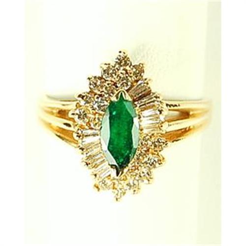 This VERY BEAUTIFUL 14k Yellow Gold Ring features a Marquise Cut EMERALD = .50 CARATS! It is surrounded by 20 Round and 8 Baguette DIAMONDS. The DIAMOND TOTAL WEIGHT = ONE CARAT! This ring is a Size 6 3/4 and it can be resized either larger or smaller.