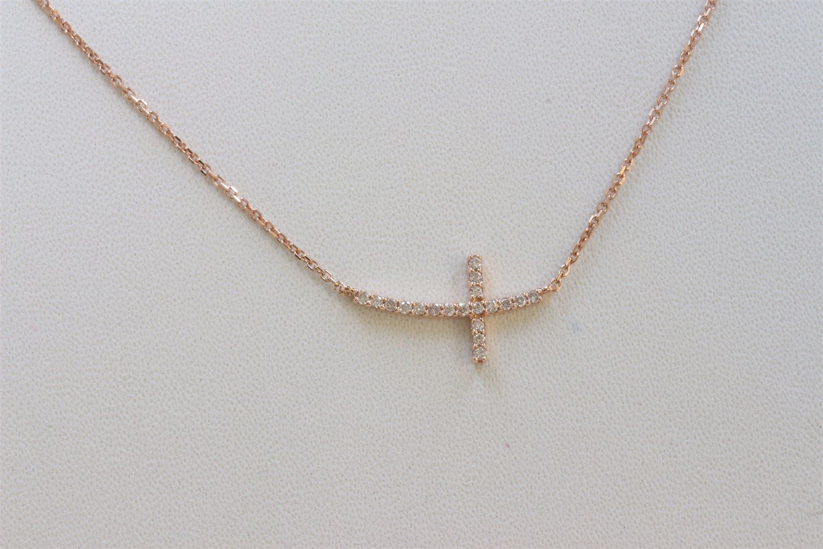 14K ROSE GOLD CROSS PENDANT WITH CHAIN :2.5g/Diamond:0.19ct