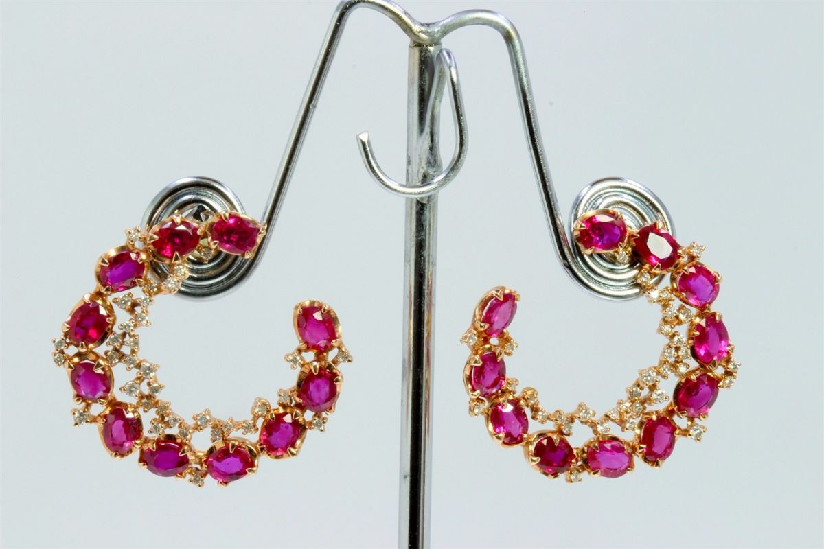14K ROSE GOLD EARRING 7.18GRAM DIAMOND 0.50CT RUBY 7.31CT