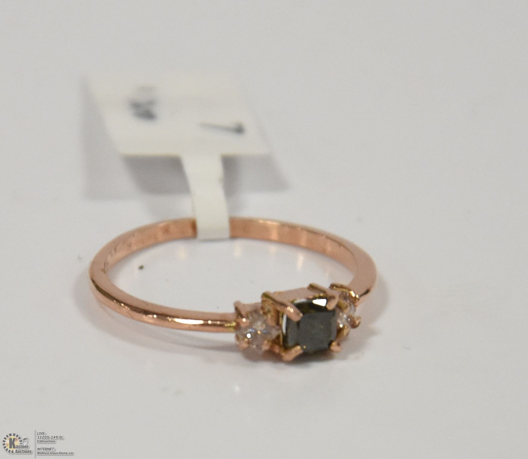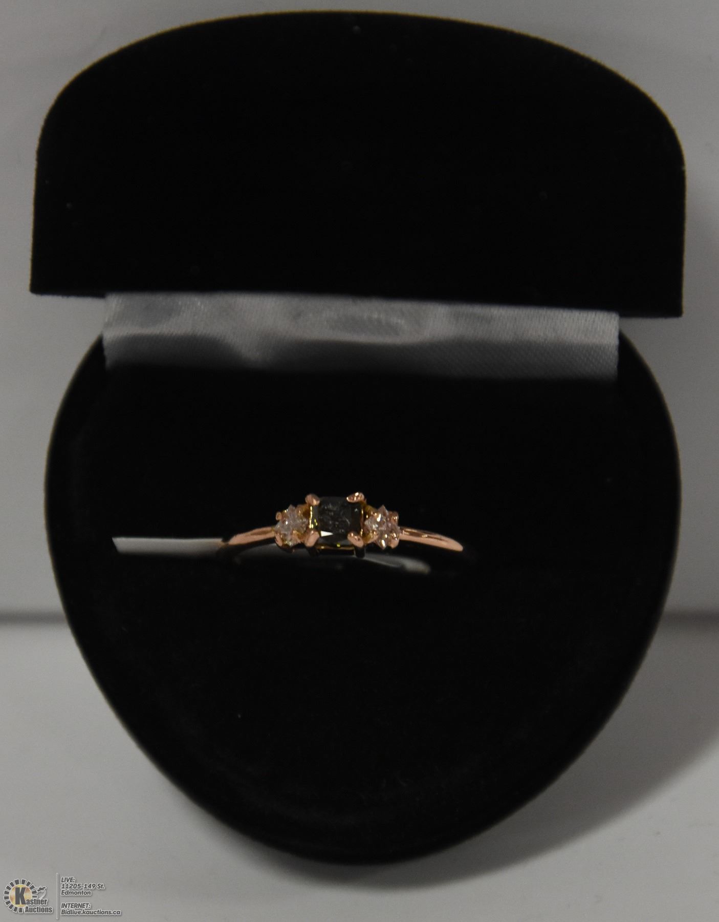 JS98-110 - BRIGHT POLISHED MOUNT CENTERS A FOUR PRONG SET, CUSHION SHAPED DIAMOND - DARK HUE, BROWNISH/GREEN - CARAT WEIGHT 0.35, TOTAL WEIGHT 1.60 GRAMS - APPRAISAL VALUE $1500