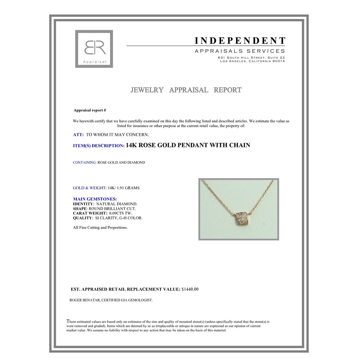 14K ROSE GOLD PENDANT WITH CHAIN 1.91g/Diamond 0.09ct