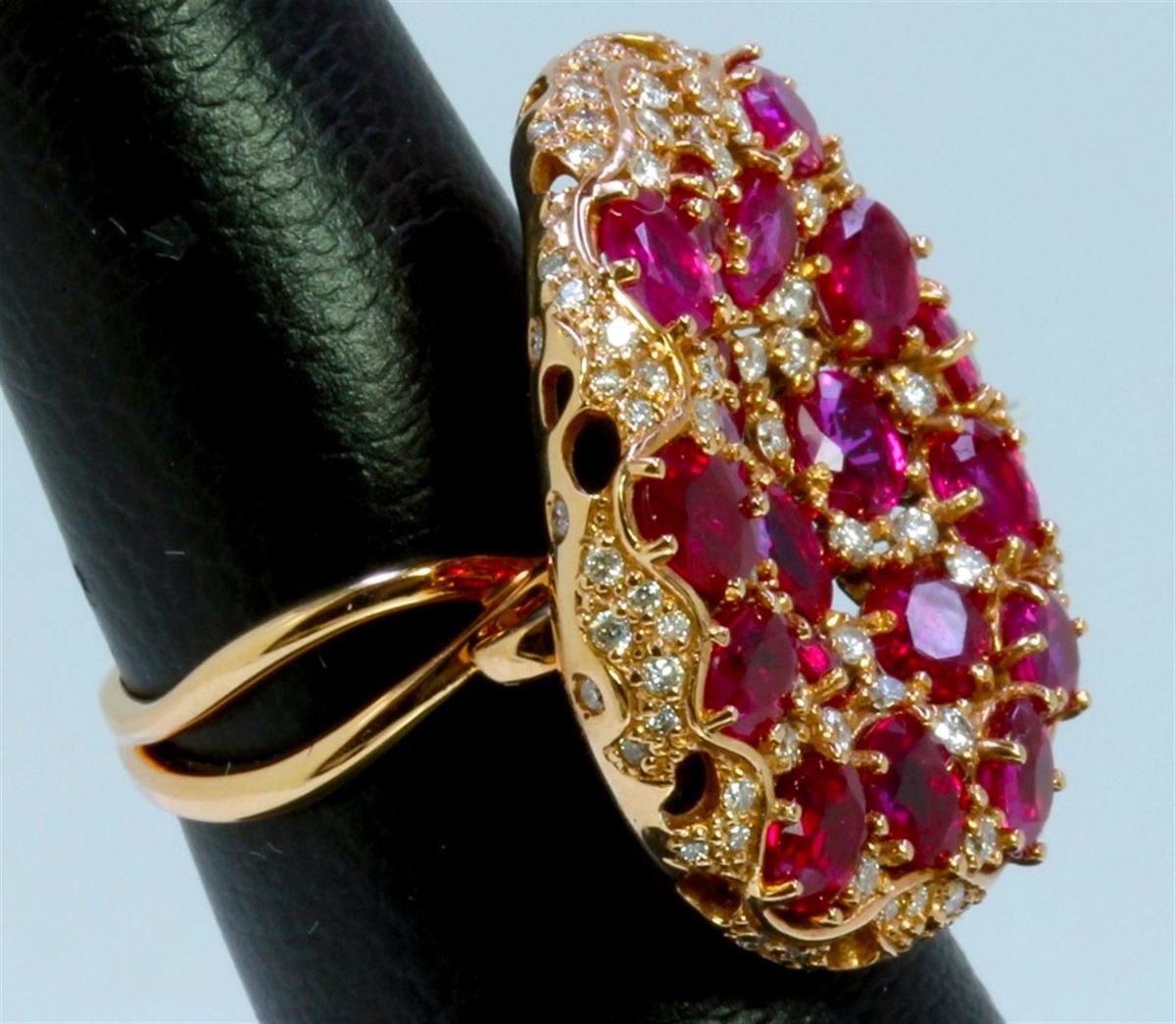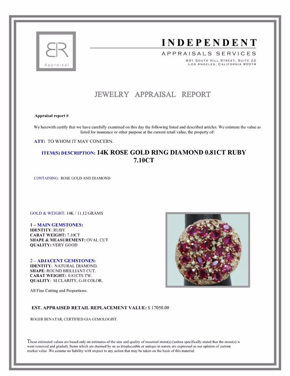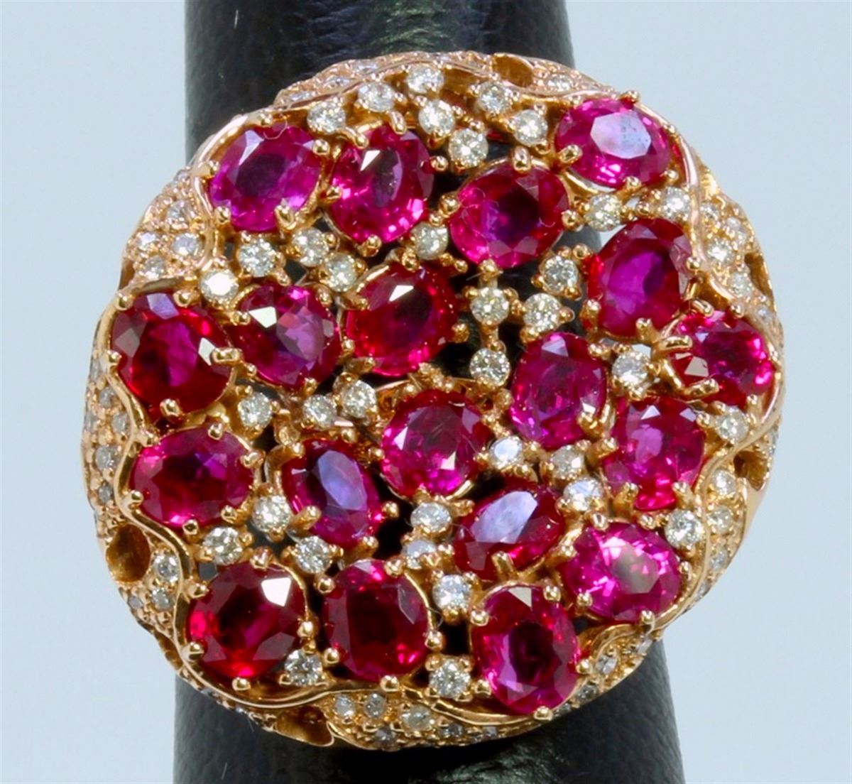 14K ROSE GOLD RING 11.12GRAM DIAMOND 0.81CT RUBY 7.10CT