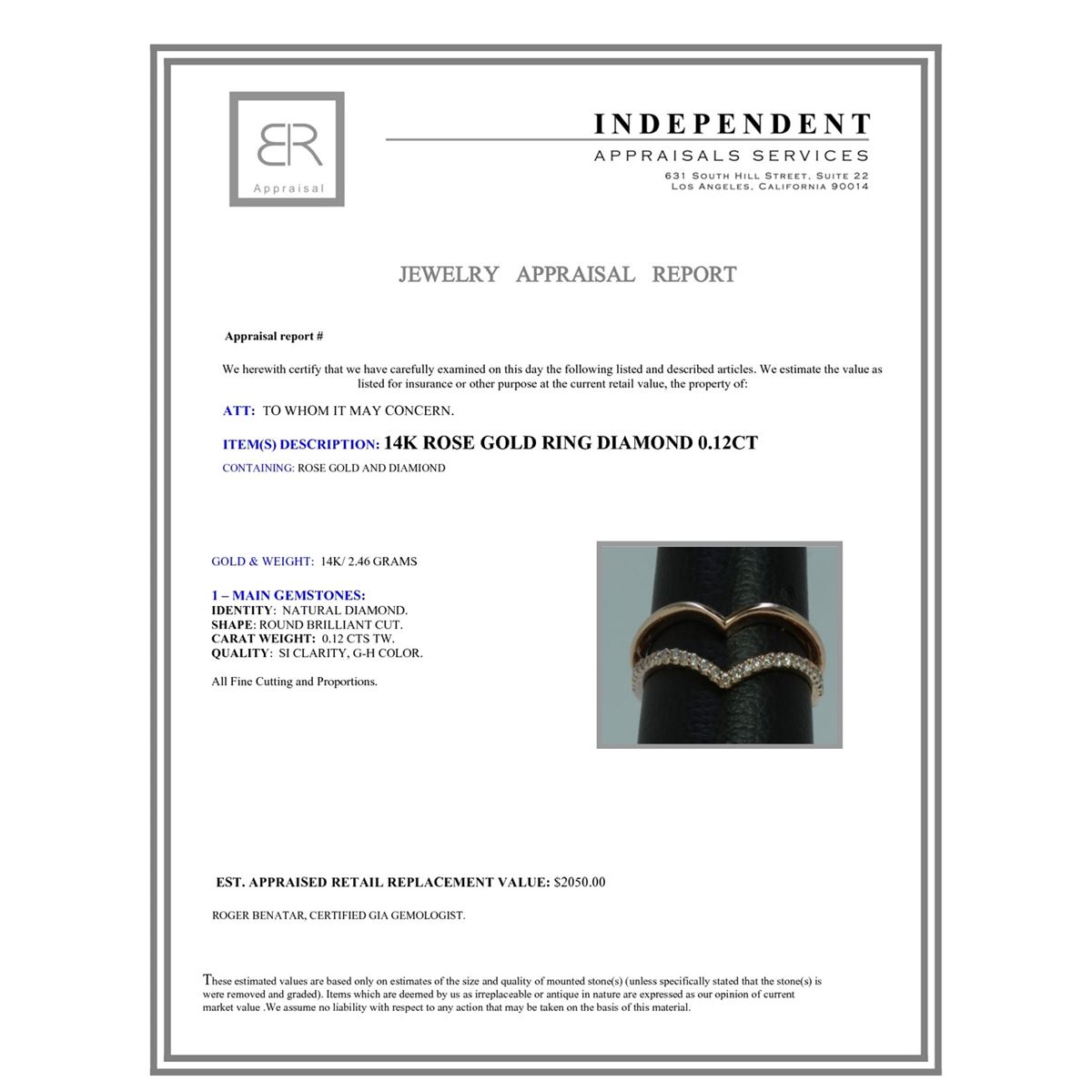 14K ROSE GOLD RING 2.46GRAM DIAMOND 0.12CT