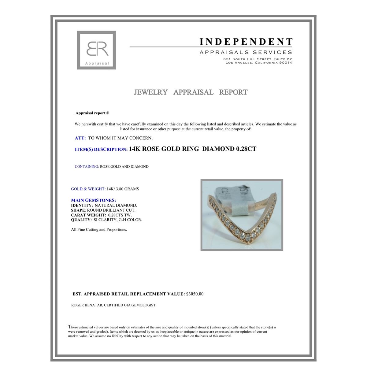 14K ROSE GOLD RING 3.80GRAM DIAMOND 0.28CT