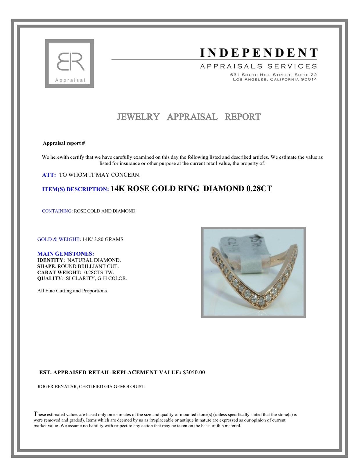 14K ROSE GOLD RING 3.80GRAM DIAMOND 0.28CT