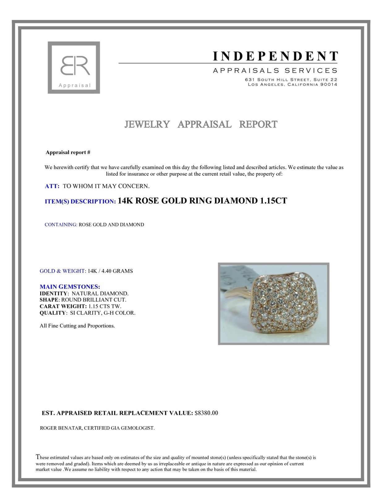 14K ROSE GOLD RING 4.40GRAM DIAMOND 1.15CT