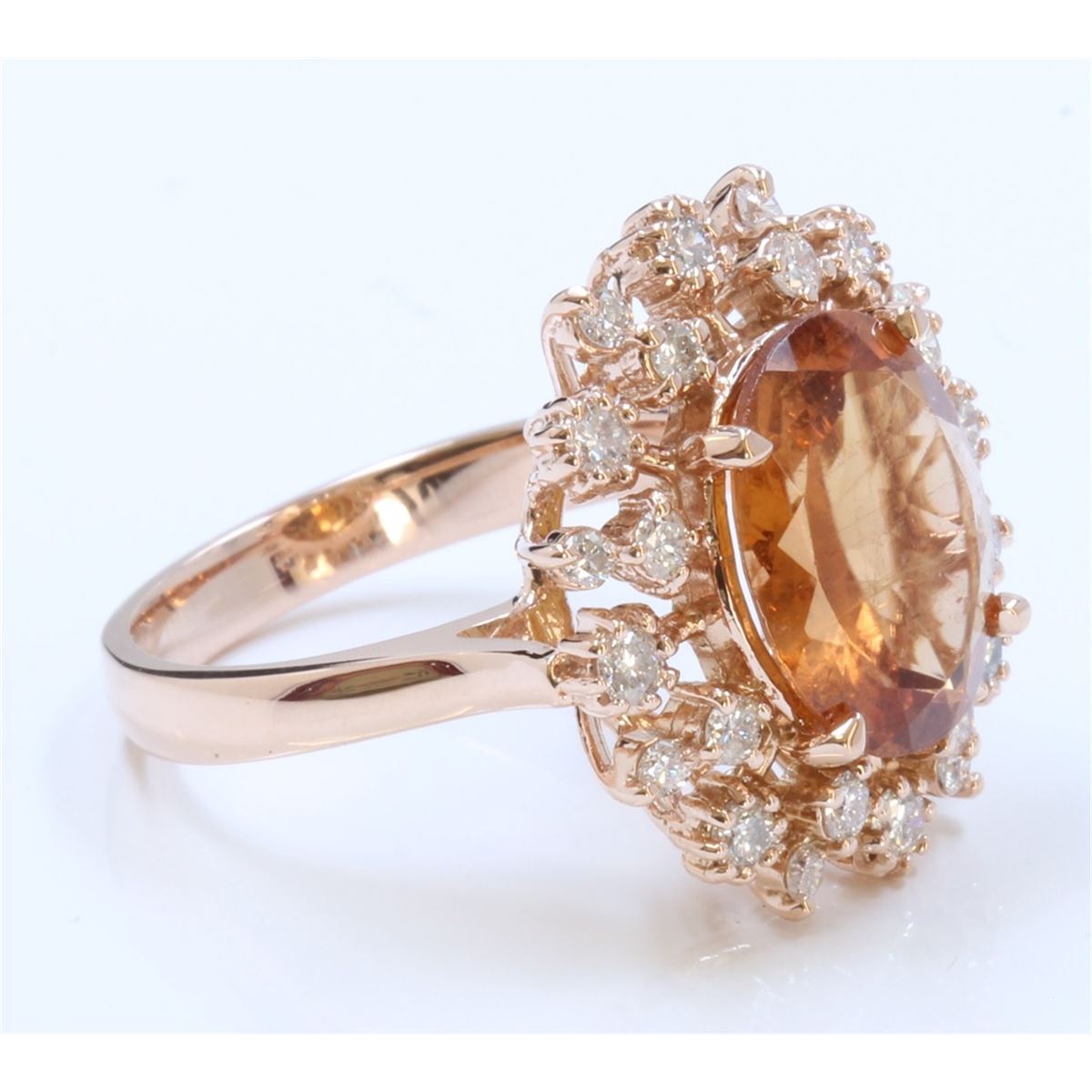 14K ROSE GOLD RING 5.97GRAM DIAMOND 0.69CT IMPERIAL TOPAZ 3.83CT