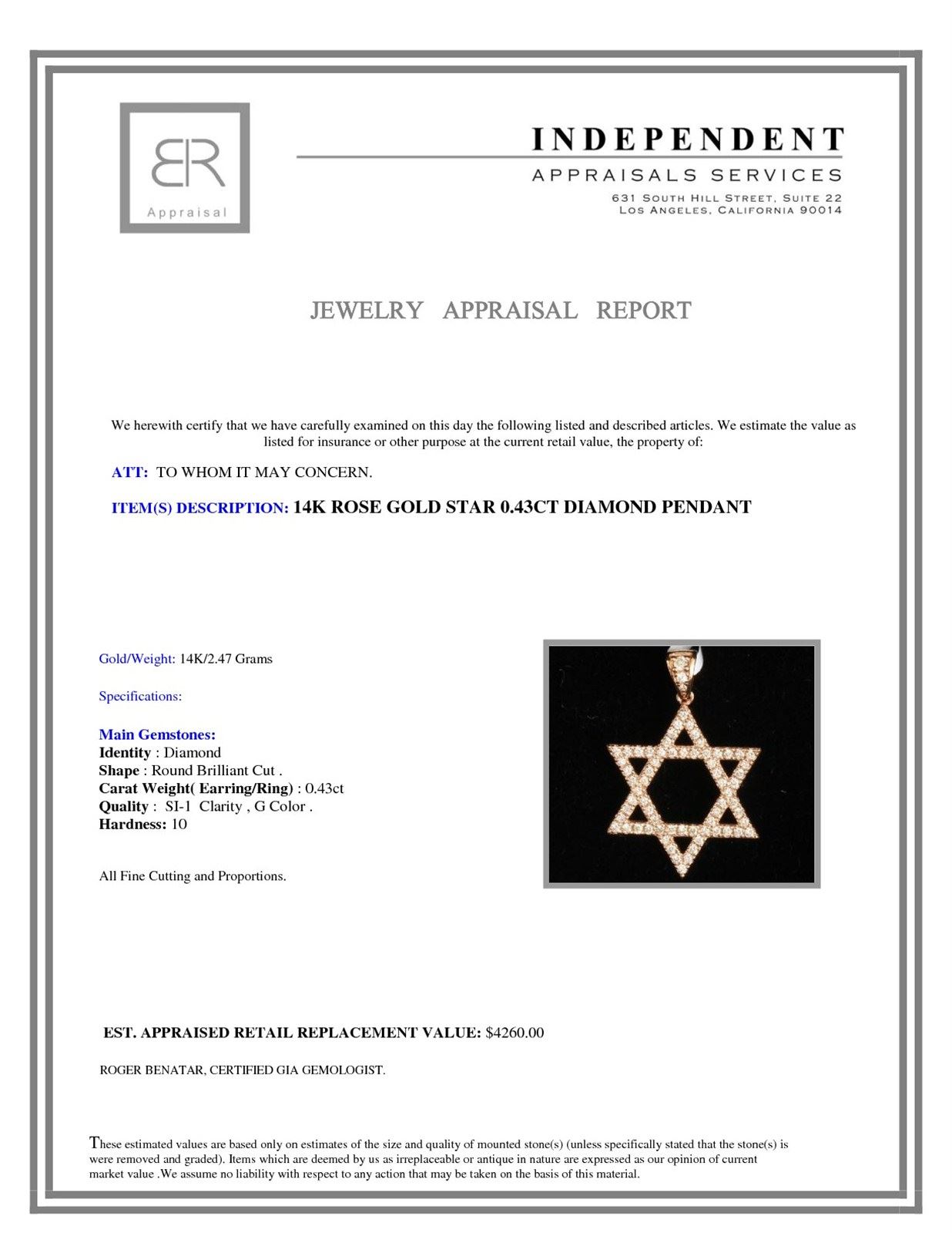 14K ROSE GOLD STAR DIAMOND PENDANT:2.47 GRAMS/DIAMOND:0.43CT/#R8058