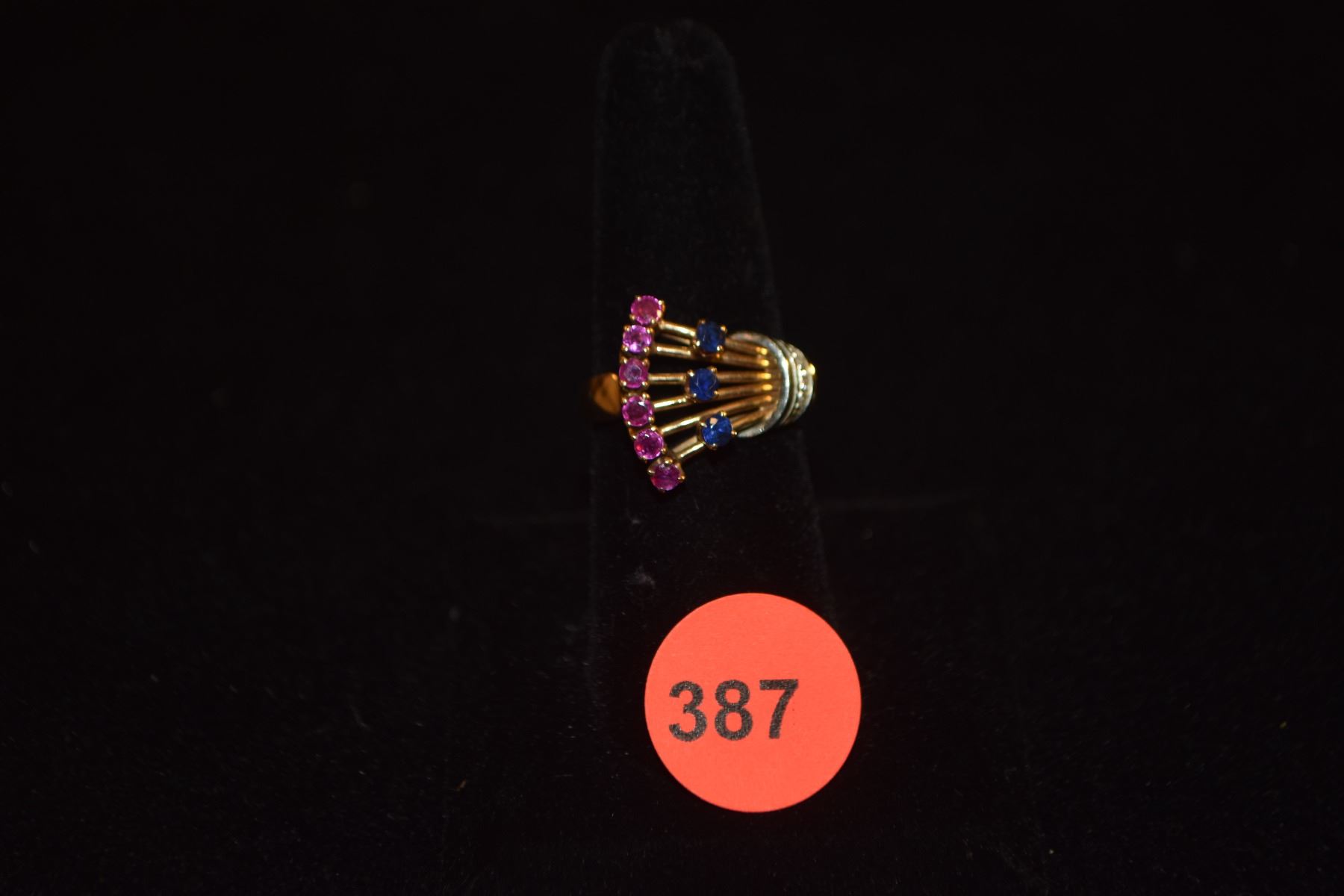 14K RUDY, SAPPHIRE & DIAMOND RING (96.3 GTW)