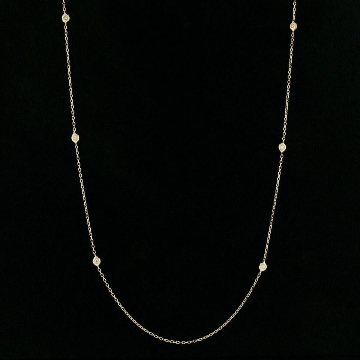 14K Rose Gold 0.12ctw 6 Round Bezel Diamond by the Yard 16" Chain Necklace. A brand new solid 14k rose gold "by the yard" chain necklace featuring 6 bezel set round brilliant cut natural diamonds (G/H - VS1/VS2; 0.12ctw). 16 inch cable link chain, 1.49 grams total weight.