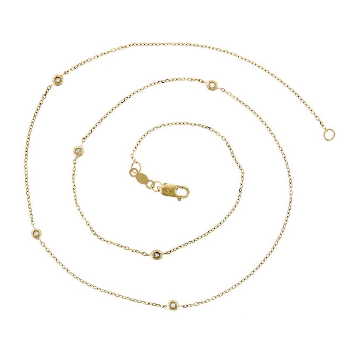 14K Rose Gold 0.12ctw 6 Round Bezel Diamond by the Yard 16" Chain Necklace. A brand new solid 14k rose gold "by the yard" chain necklace featuring 6 bezel set round brilliant cut natural diamonds (G/H - VS1/VS2; 0.12ctw). 16 inch cable link chain, 1.49 grams total weight.