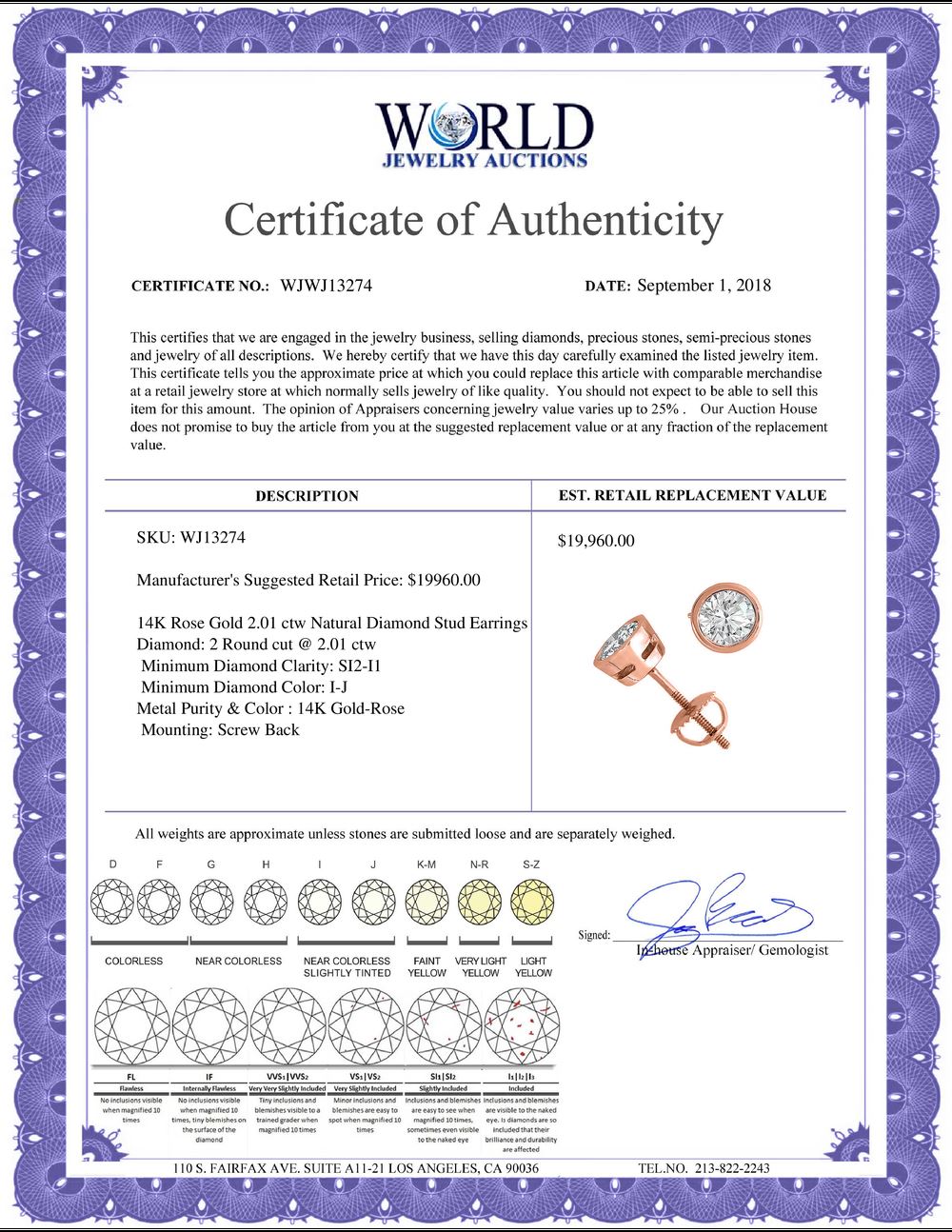 REF-519K2Y - SKU: WJ13274 ---- 14K Rose Gold 2.01 ctw Natural Diamond Stud Earrings