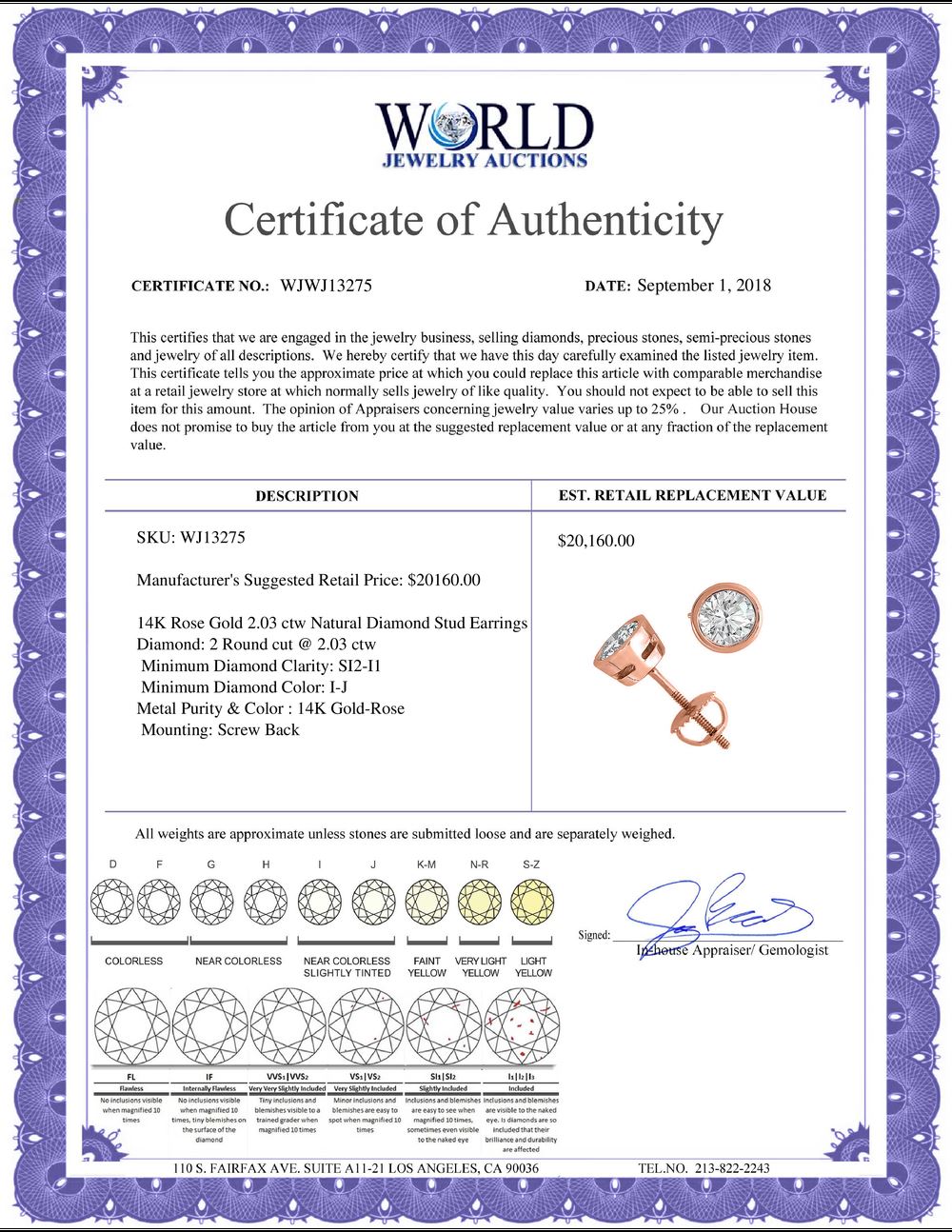 REF-519M2K - SKU: WJ13275 ---- 14K Rose Gold 2.03 ctw Natural Diamond Stud Earrings