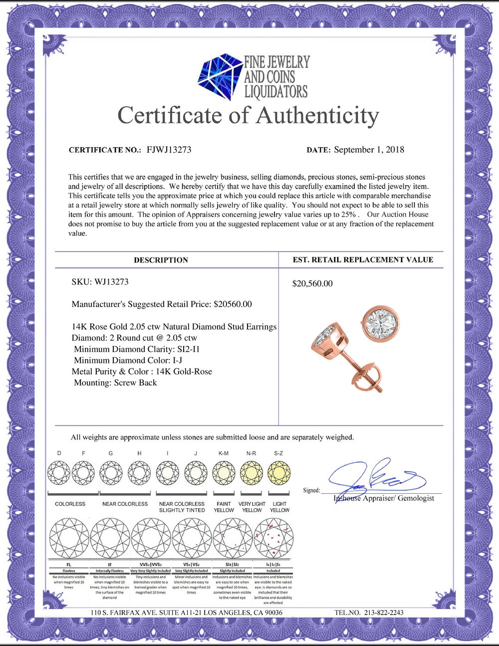 REF-519G2A - SKU: WJ13273 ---- 14K Rose Gold 2.05 ctw Natural Diamond Stud Earrings