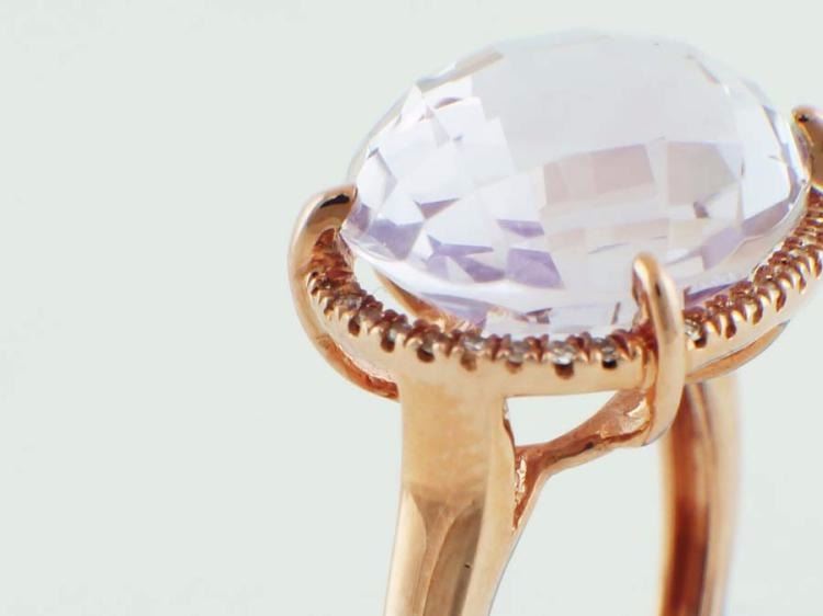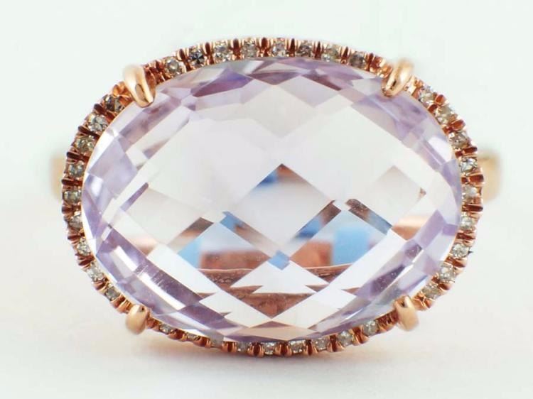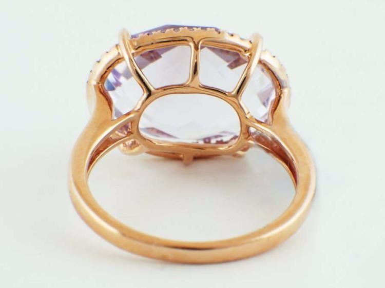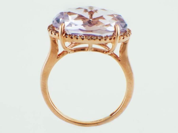 |**Total Carat Weight:8.95|**Clarity:Si2-Si3|**Cut:Very Good|**Setting:Prong- Micro Pave Set|**Main Stone:Amethyst|**MAIN Stone Treatment:Not Enhanced|**Main Stone Color:Pink|**Main Stone Shape:Oval|**Theme:|**Length Inches:|**Ring Size:6.5|**Style:Cocktail|**Metal Purity:14k|**Metal:Rose Gold|**Gold Weight:8.95g|**Dimension:|**Diamond Color:G-H|**Sizable:Yes|**Condition A brand-new, unused, and unworn item (including handmade items) in the original packaging (such as the original box or bag) and/or with the original tags attached